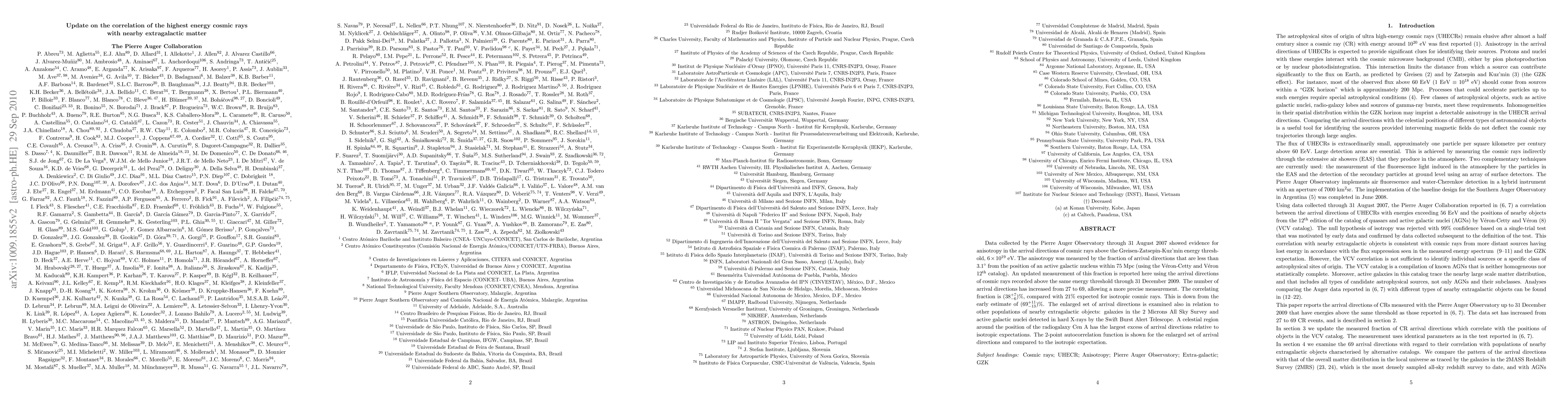 The Pierre Auger Observatory reports an updated correlation between the highest energy cosmic rays and nearby extragalactic matter, showing a significant anisotropy in arrival directions above $6\times 10^{19}$ eV, with 38% of cosmic rays arriving within $3.1^\circ$ of nearby active galactic nuclei, compared to the 21% expected for isotropic distribution.