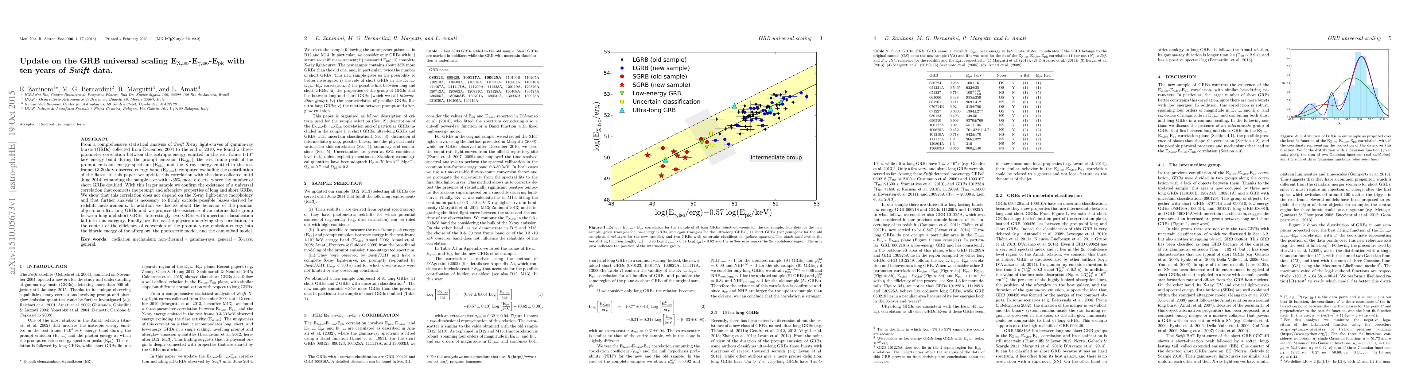 From a comprehensive statistical analysis of $Swift$ X-ray light-curves of gamma-ray bursts (GRBs) collected from December 2004 to the end of 2010, we found a three-parameter correlation between the isotropic energy emitted in the rest frame 1-10$^4$ keV energy band during the prompt emission (E$_{\rm{\gamma,iso}}$), the rest frame peak of the prompt emission energy spectrum (E$_{\rm{pk}}$), and the X-ray energy emitted in the rest frame 0.3-30 keV observed energy band (E$_{\rm{X,iso}}$), computed excluding the contribution of the flares. In this paper, we update this correlation with the data collected until June 2014, expanding the sample size with $\sim$35% more objects, where the number of short GRBs doubled. With this larger sample we confirm the existence of a universal correlation that connects the prompt and afterglow properties of long and short GRBs. We show that this correlation does not depend on the X-ray light-curve morphology and that further analysis is necessary to firmly exclude possible biases derived by redshift measurements. In addition we discuss about the behavior of the peculiar objects as ultra-long GRBs and we propose the existence of an intermediate group between long and short GRBs. Interestingly, two GRBs with uncertain classification fall into this category. Finally, we discuss the physics underlying this correlation, in the contest of the efficiency of conversion of the prompt $\gamma$-ray emission energy into the kinetic energy of the afterglow, the photosferic model, and the cannonball model.