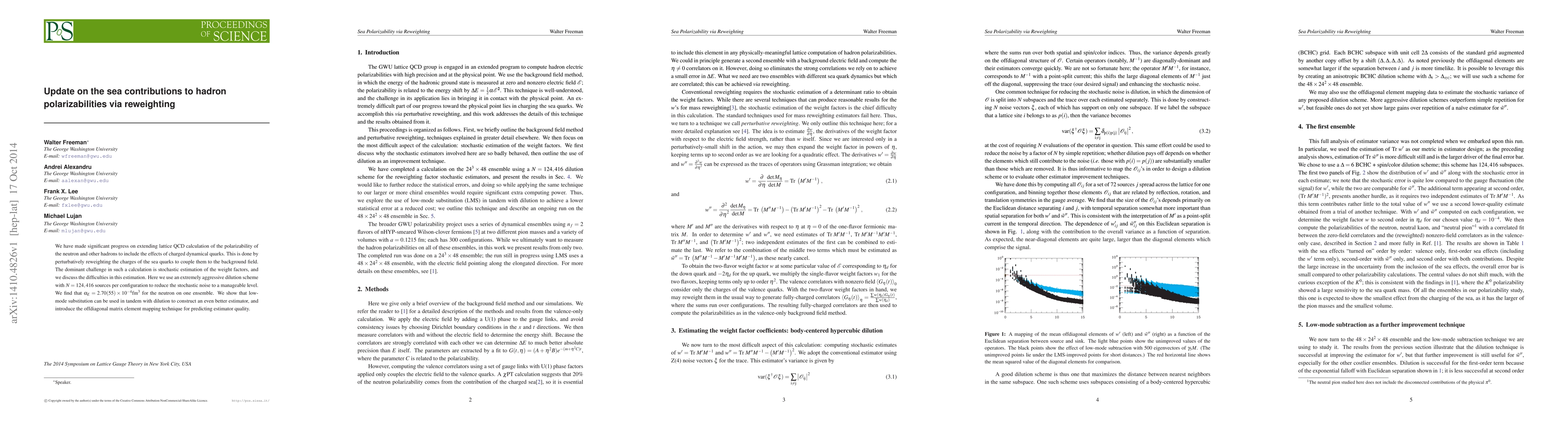 We have made significant progress on extending lattice QCD calculation of the polarizability of the neutron and other hadrons to include the effects of charged dynamical quarks. This is done by perturbatively reweighting the charges of the sea quarks to couple them to the background field. The dominant challenge in such a calculation is stochastic estimation of the weight factors, and we discuss the difficulties in this estimation. Here we use an extremely aggressive dilution scheme with N = 124,416 sources per configuration to reduce the stochastic noise to a manageable level. We find that \alpha_E = 2.70(55) * 10^-4 fm^3 for the neutron on one ensemble. We show that low-mode substitution can be used in tandem with dilution to construct an even better estimator, and introduce the offdiagonal matrix element mapping technique for predicting estimator quality.