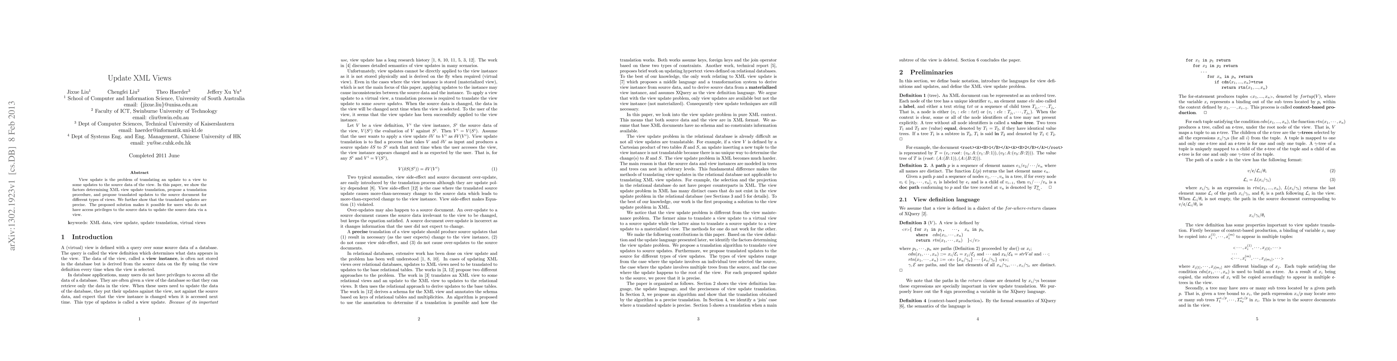 This paper presents a method for translating updates to XML views into precise updates to the underlying source data, enabling users without direct access to the source to update it via the view. The proposed procedure ensures accurate and precise translated updates for different types of views.