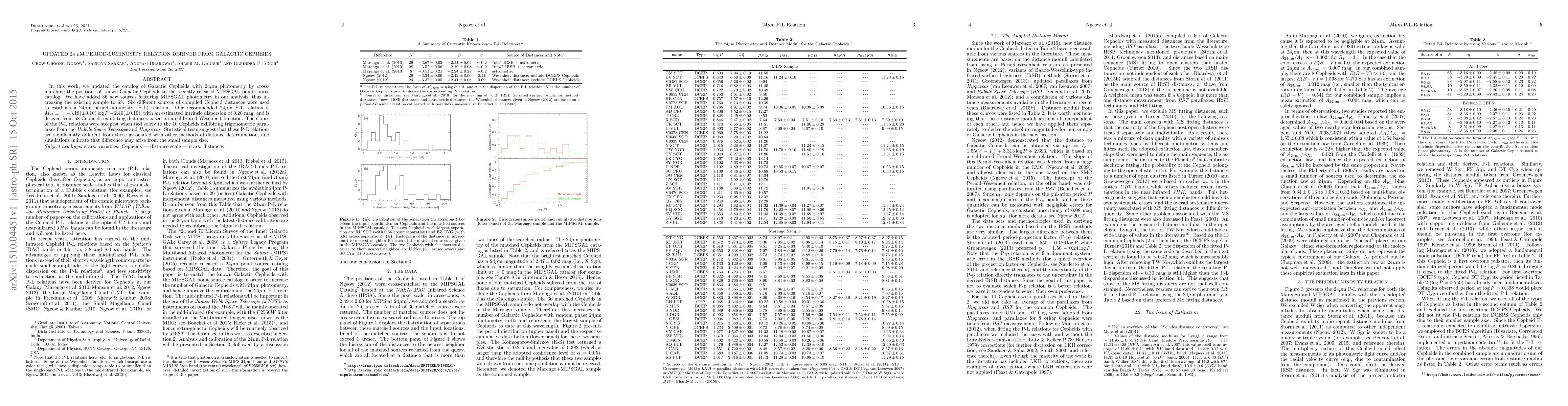 Researchers updated a period-luminosity relation for Galactic Cepheids using 24μm photometry, establishing a new relation with an intrinsic dispersion of 0.20 mag.