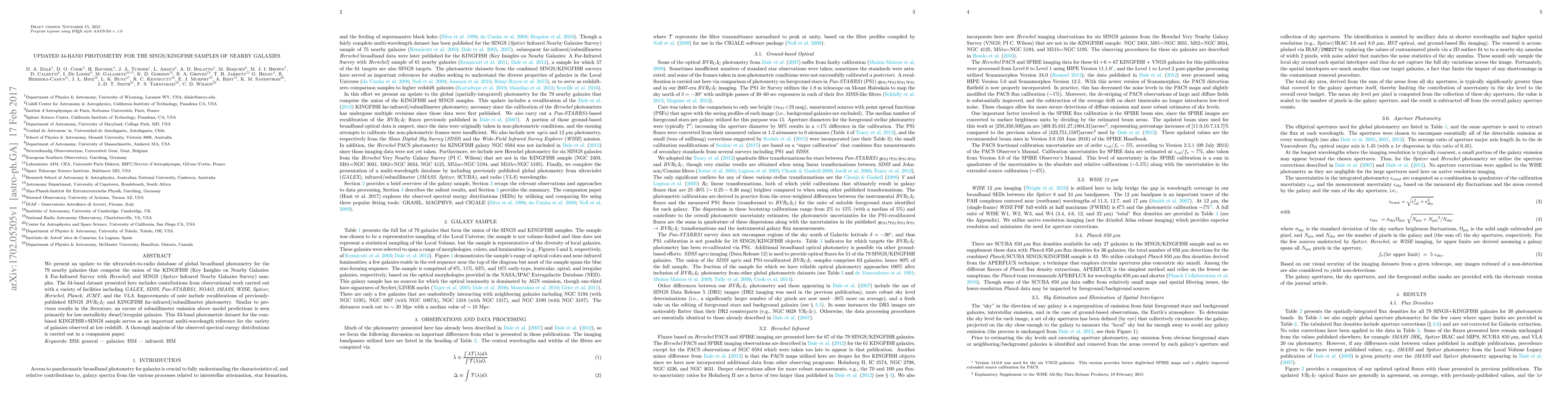 This paper updates the 34-band ultraviolet-to-radio photometric dataset for 79 nearby galaxies from the KINGFISH and SINGS surveys, incorporating data from various observatories. Key improvements include recalibrated SINGS and KINGFISH photometry, and an excess of submillimeter emission in low-metallicity galaxies.