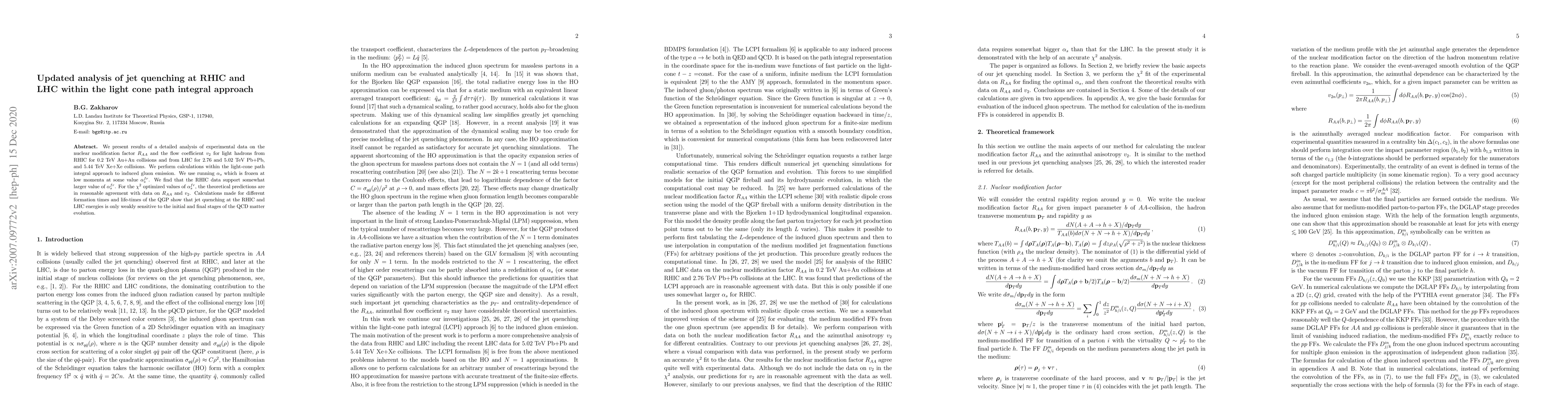 We present results of a detailed analysis of experimental data on the nuclear modification factor $R_{AA}$ and the flow coefficient $v_2$ for light hadrons from RHIC for $0.2$ TeV Au+Au collisions and from LHC for $2.76$ and $5.02$ TeV Pb+Pb, and $5.44$ TeV Xe+Xe collisions. We perform calculations within the light-cone path integral approach to induced gluon emission. We use running $\alpha_s$ which is frozen at low momenta at some value $\alpha_{s}^{fr}$. We find that the RHIC data support somewhat larger value of $\alpha_{s}^{fr}$. For the $\chi^2$ optimized values of $\alpha_{s}^{fr}$, the theoretical predictions are in reasonable agreement with data on $R_{AA}$ and $v_2$. Calculations made for different formation times and life-times of the QGP show that jet quenching at the RHIC and LHC energies is only weakly sensitive to the initial and final stages of the QCD matter evolution.