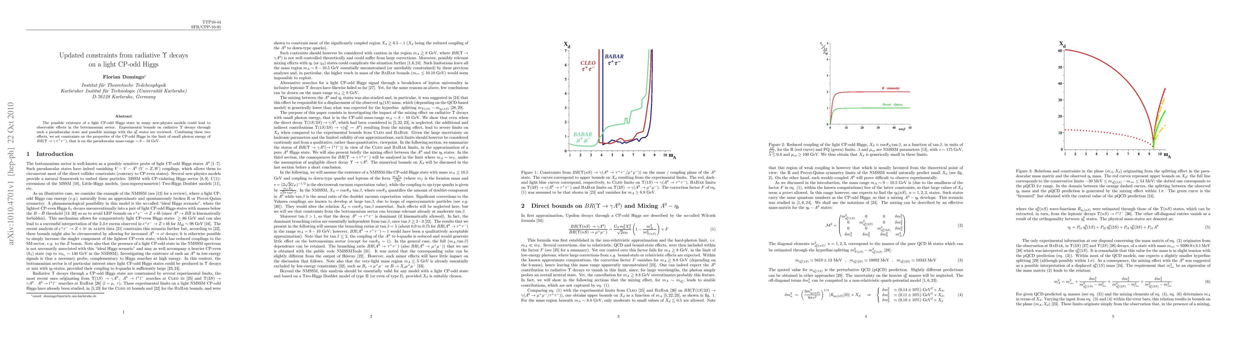 The possible existence of a light CP-odd Higgs state in many new-physics models could lead to observable effects in the bottomonium sector. Experimental bounds on radiative $\Upsilon$ decays through such a pseudoscalar state and possible mixings with the $\eta_b^0$ states are reviewed. Combining these two effects, we set constraints on the properties of the CP-odd Higgs in the limit of small photon energy of $BR(\Upsilon\to\gamma\,\tau^+\tau^-)$, that is on the pseudoscalar mass-range $\sim8-10$GeV.