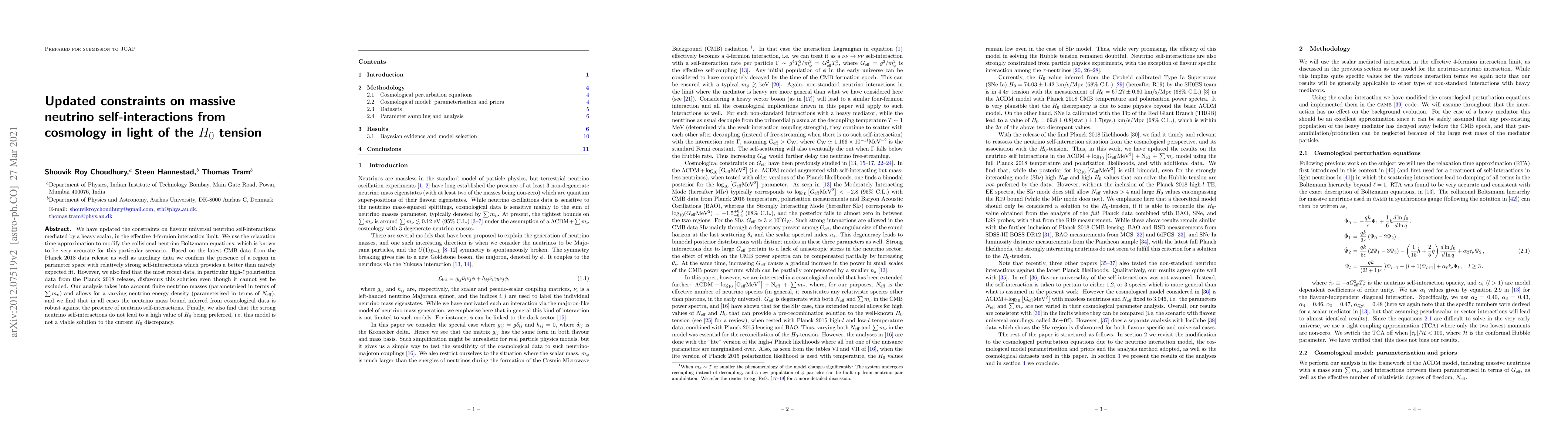 This paper updates constraints on neutrino self-interactions using the latest CMB data from Planck 2018, finding a region with relatively strong self-interactions that fits better than expected. However, recent high-ℓ polarisation data disfavours this solution, and the model does not resolve the $H_0$ tension.