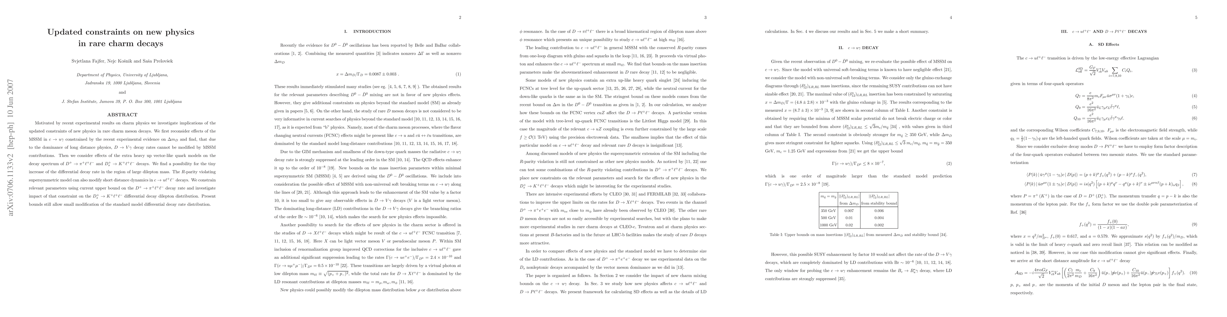 Motivated by recent experimental results on charm physics we investigate implications of the updated constraints of new physics in rare charm meson decays. We first reconsider effects of the MSSM in $c\to u \gamma$ constrained by the recent experimental evidence on $\Delta m_D$ and find, that due to the dominance of long distance physics, $D \to V \gamma$ decay rates cannot be modified by MSSM contributions. Then we consider effects of the extra heavy up vector-like quark models on the decay spectrum of $D^+ \to \pi^+ l^+ l^-$ and $D_s^+ \to K^+ l^+ l^-$ decays. We find a possibility for the tiny increase of the differential decay rate in the region of large dilepton mass. The R-parity violating supersymmetric model can also modify short distance dynamics in $c \to u l^+ l^-$ decays. We constrain relevant parameters using current upper bound on the $D^+ \to \pi^+ l^+ l^-$ decay rate and investigate impact of that constraint on the $D_s^+ \to K^+ l^+ l^-$ differential decay dilepton distribution. Present bounds still allow small modification of the standard model differential decay rate distribution.