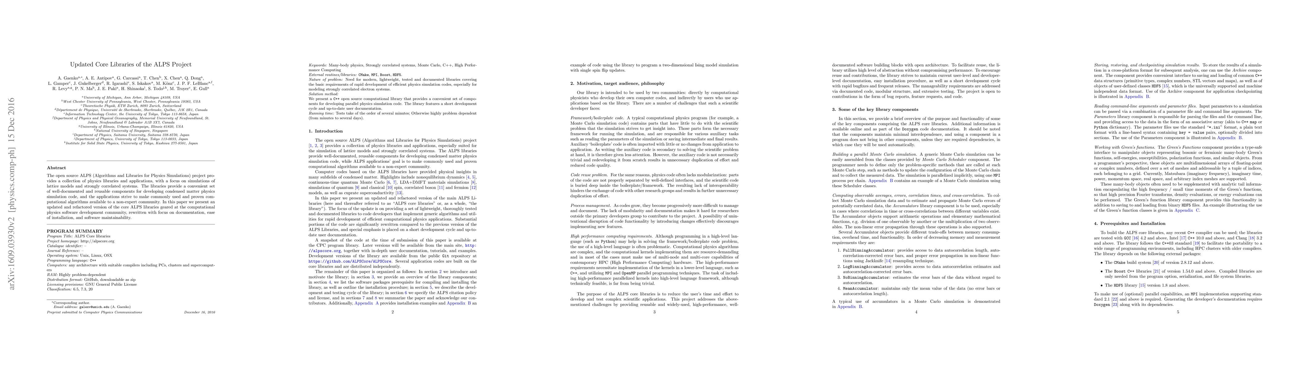This paper details an updated version of the ALPS project's core libraries, emphasizing enhanced documentation, simplified installation, and improved software maintainability to support the computational physics community. The libraries aim to provide reusable components for developing simulations of lattice models and strongly correlated systems.