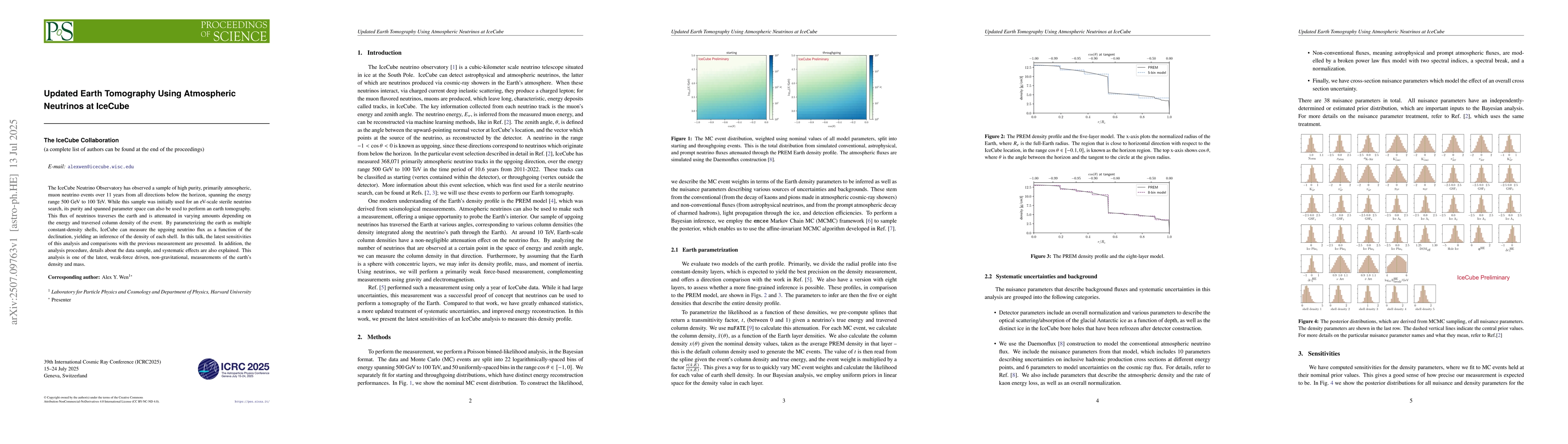 The IceCube Neutrino Observatory has observed a sample of high purity, primarily atmospheric, muon neutrino events over 11 years from all directions below the horizon, spanning the energy range 500 GeV to 100 TeV. While this sample was initially used for an eV-scale sterile neutrino search, its purity and spanned parameter space can also be used to perform an earth tomography. This flux of neutrinos traverses the earth and is attenuated in varying amounts depending on the energy and traversed column density of the event. By parameterizing the earth as multiple constant--density shells, IceCube can measure the upgoing neutrino flux as a function of the declination, yielding an inference of the density of each shell. In this talk, the latest sensitivities of this analysis and comparisons with the previous measurement are presented. In addition, the analysis procedure, details about the data sample, and systematic effects are also explained. This analysis is one of the latest, weak-force driven, non-gravitational, measurements of the earth's density and mass.