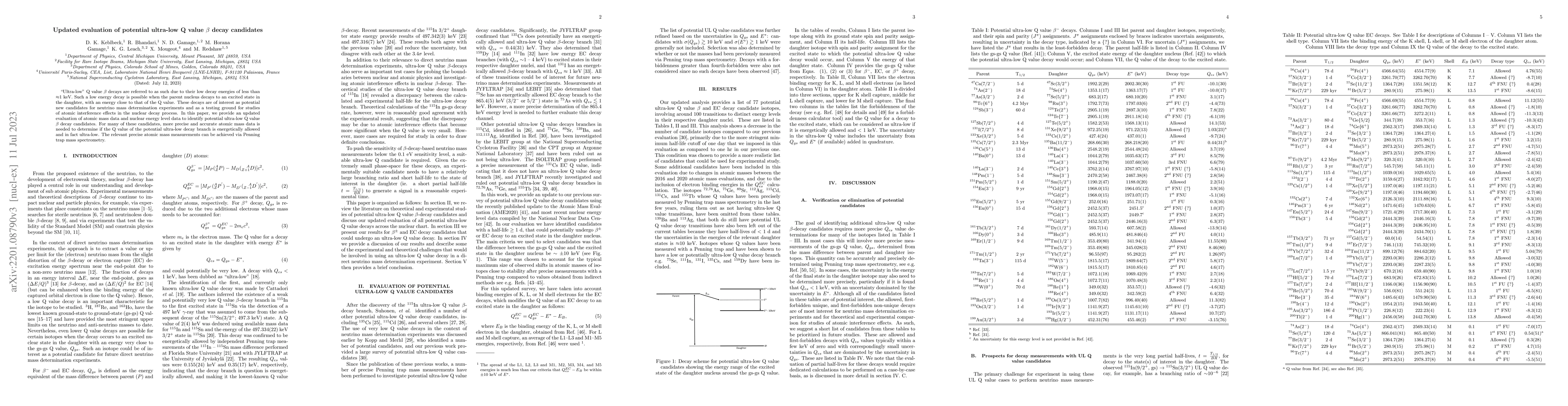 This paper updates the evaluation of potential ultra-low Q value β-decay candidates, focusing on decays with energies below 1 keV. It identifies candidates for neutrino mass experiments and studies of atomic interference effects, emphasizing the need for precise atomic mass data to confirm their ultra-low Q values, which can be measured using Penning trap mass spectrometry.