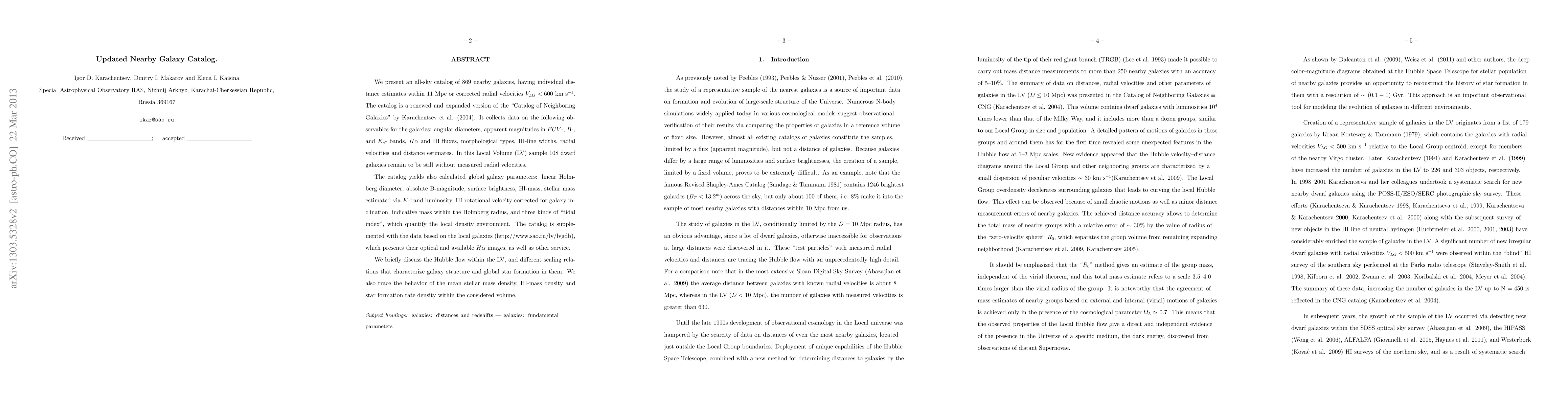 We present an all-sky catalog of 869 nearby galaxies, having individual distance estimates within 11 Mpc or corrected radial velocities V_{LG} < 600 km/s. The catalog is a renewed and expanded version of the "Catalog of Neighboring Galaxies" by Karachentsev et al. (2004). It collects data on the following observables for the galaxies: angular diameters, apparent magnitudes in FUV-, B-, and K_s- bands, H_alpha and HI fluxes, morphological types, HI-line widths, radial velocities and distance estimates. In this Local Volume (LV) sample 108 dwarf galaxies remain to be still without measured radial velocities. The catalog yields also calculated global galaxy parameters: linear Holmberg diameter, absolute B-magnitude, surface brightness, HI-mass, stellar mass estimated via K-band luminosity, HI rotational velocity corrected for galaxy inclination, indicative mass within the Holmberg radius, and three kinds of "tidal index", which quantify the local density environment. The catalog is supplemented with the data based on the local galaxies (http://www.sao.ru/lv/lvgdb), which presents their optical and available H_alpha images, as well as other service. We briefly discuss the Hubble flow within the LV, and different scaling relations that characterize galaxy structure and global star formation in them. We also trace the behavior of the mean stellar mass density, HI-mass density and star formation rate density within the considered volume.