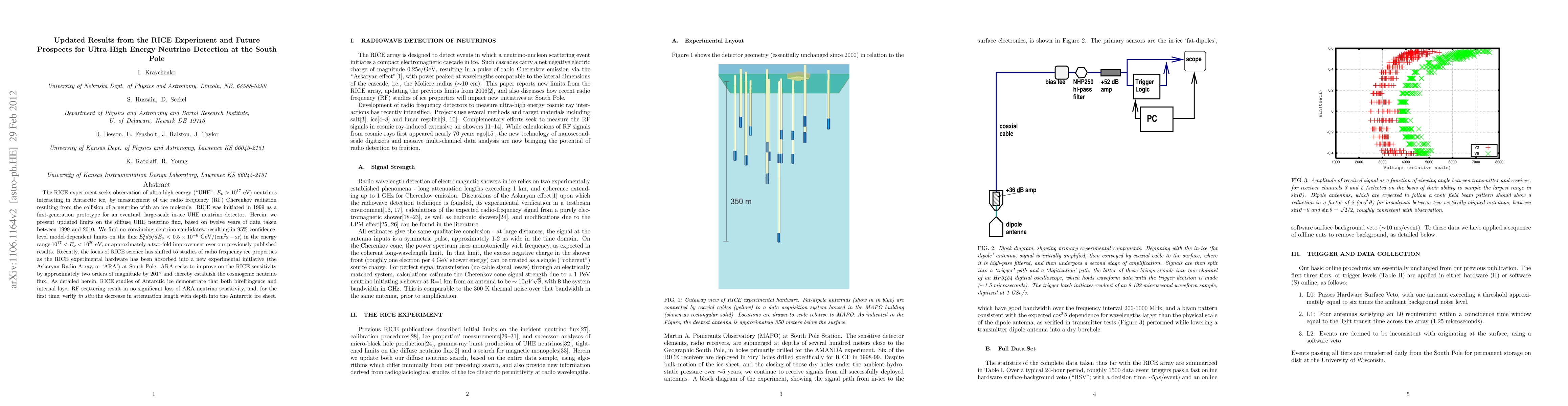 The RICE experiment updates its limits on ultra-high energy neutrino flux, finding no convincing candidates and improving previous results by a factor of two. A new initiative, the Askaryan Radio Array, aims to enhance detection sensitivity by two orders of magnitude.