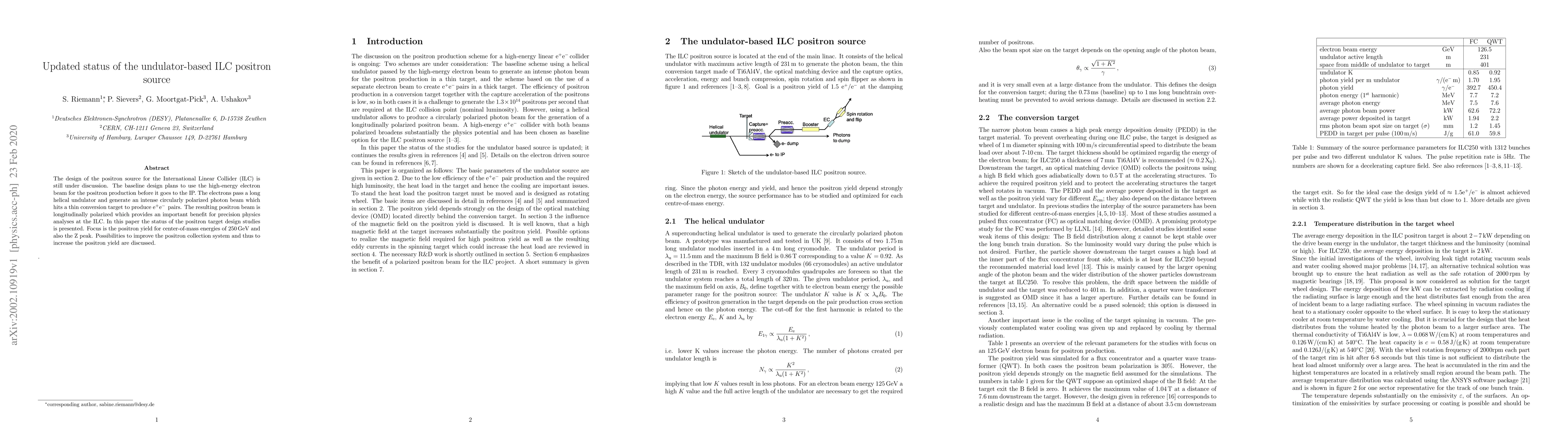 This paper updates the design and studies of the positron source for the International Linear Collider (ILC), focusing on the helical undulator-based method to produce polarized positrons. It discusses potential improvements to the positron collection system to enhance yield at 250 GeV and the Z peak.