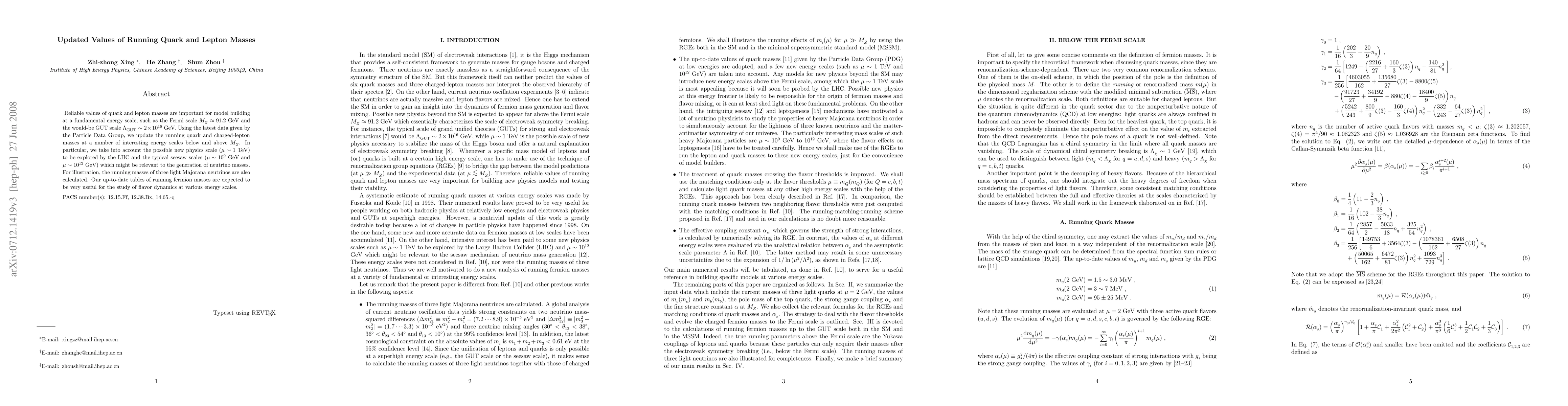 Reliable values of quark and lepton masses are important for model building at a fundamental energy scale, such as the Fermi scale M_Z \approx 91.2 GeV and the would-be GUT scale \Lambda_GUT \sim 2 \times 10^16 GeV. Using the latest data given by the Particle Data Group, we update the running quark and charged-lepton masses at a number of interesting energy scales below and above M_Z. In particular, we take into account the possible new physics scale (\mu \sim 1 TeV) to be explored by the LHC and the typical seesaw scales (\mu \sim 10^9 GeV and \mu \sim 10^12 GeV) which might be relevant to the generation of neutrino masses. For illustration, the running masses of three light Majorana neutrinos are also calculated. Our up-to-date table of running fermion masses are expected to be very useful for the study of flavor dynamics at various energy scales.