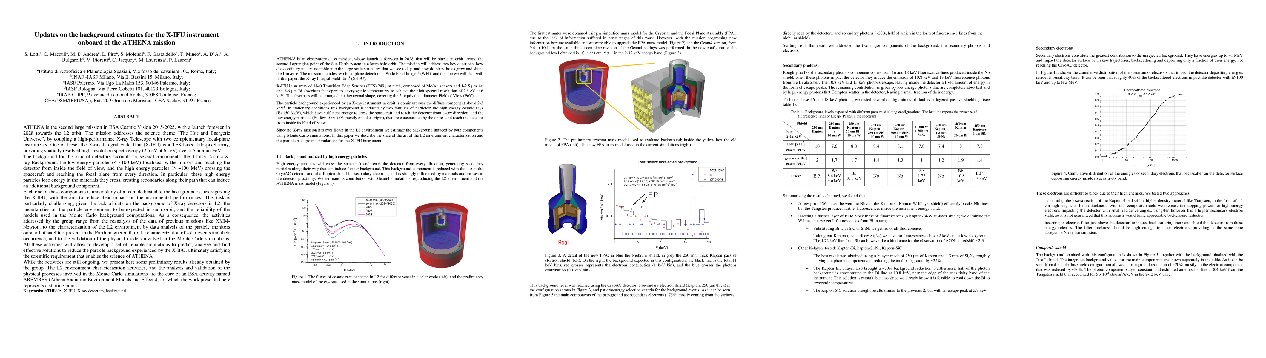 ATHENA, with a launch foreseen in 2028 towards the L2 orbit, addresses the science theme "The Hot and Energetic Universe", coupling a high-performance X-ray Telescope with two complementary focal-plane instruments. One of these, the X-ray Integral Field Unit (X-IFU) is a TES based kilo-pixel array providing spatially resolved high-resolution spectroscopy (2.5 eV at 6 keV) over a 5 arcmin FoV. The background for this kind of detectors accounts for several components: the diffuse Cosmic X-ray Background, the low energy particles (<~100 keV) focalized by the mirrors and reaching the detector from inside the field of view, and the high energy particles (>~100 MeV) crossing the spacecraft and reaching the focal plane from every direction. Each one of these components is under study to reduce their impact on the instrumental performances. This task is particularly challenging, given the lack of data on the background of X-ray detectors in L2, the uncertainties on the particle environment to be expected in such orbit, and the reliability of the models used in the Monte Carlo background computations. As a consequence, the activities addressed by the group range from the reanalysis of the data of previous missions like XMM-Newton, to the characterization of the L2 environment by data analysis of the particle monitors onboard of satellites present in the Earth magnetotail, to the characterization of solar events and their occurrence, and to the validation of the physical models involved in the Monte Carlo simulations. All these activities will allow to develop a set of reliable simulations to predict, analyze and find effective solutions to reduce the particle background experienced by the X-IFU, ultimately satisfying the scientific requirement that enables the science of ATHENA. While the activities are still ongoing, we present here some preliminary results already obtained by the group.