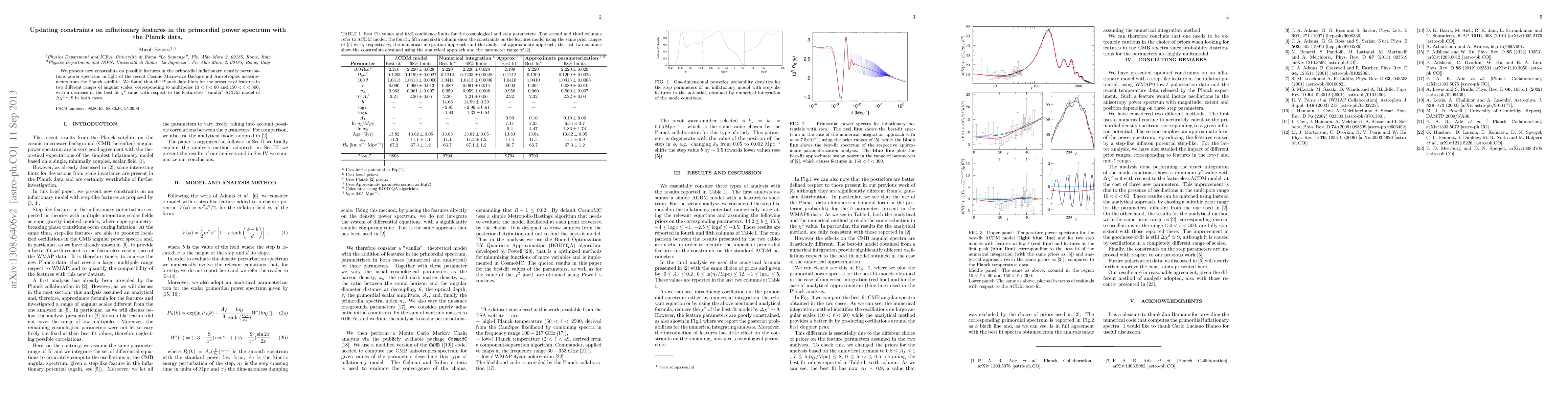 This paper updates constraints on inflationary features in the primordial power spectrum using the latest Planck satellite data, finding hints of features in two angular scale ranges (10< l <60 and 150< l <300) that improve the fit over the standard LCDM model by a Delta chi^2 of around 9 in both cases.