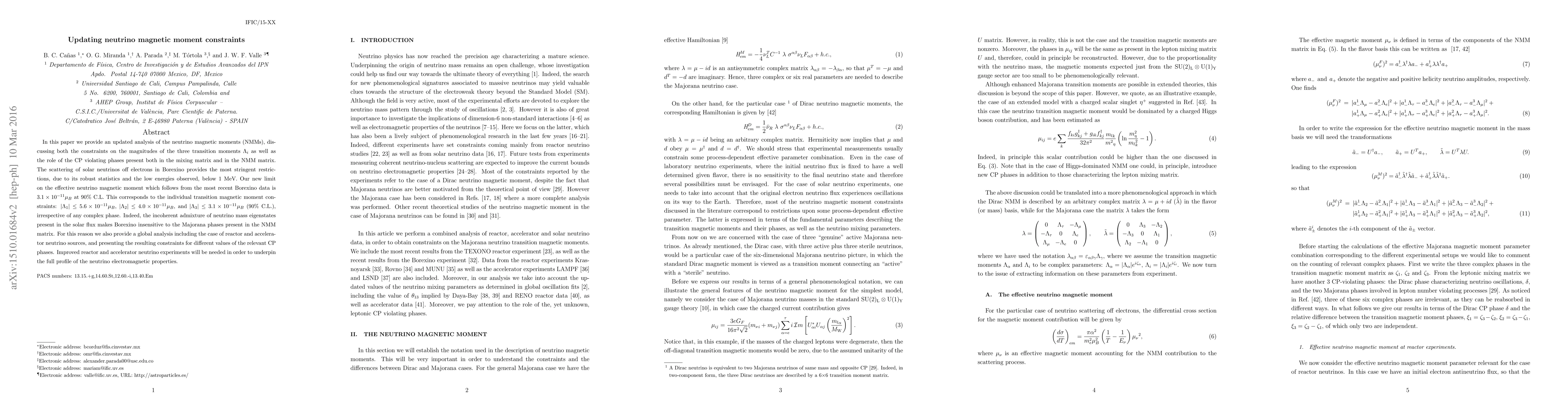 New research updates constraints on neutrino magnetic moments, setting a limit of 3.1 x 10^-11 mu_B at 90% confidence, with improved experiments needed to fully understand neutrino electromagnetic properties.