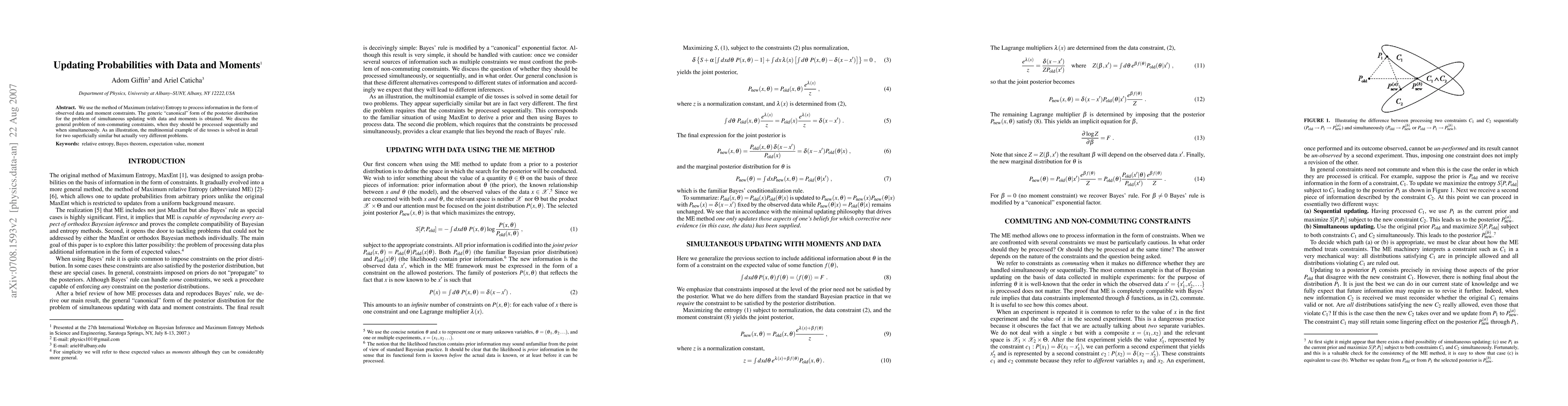 We use the method of Maximum (relative) Entropy to process information in the form of observed data and moment constraints. The generic "canonical" form of the posterior distribution for the problem of simultaneous updating with data and moments is obtained. We discuss the general problem of non-commuting constraints, when they should be processed sequentially and when simultaneously. As an illustration, the multinomial example of die tosses is solved in detail for two superficially similar but actually very different problems.