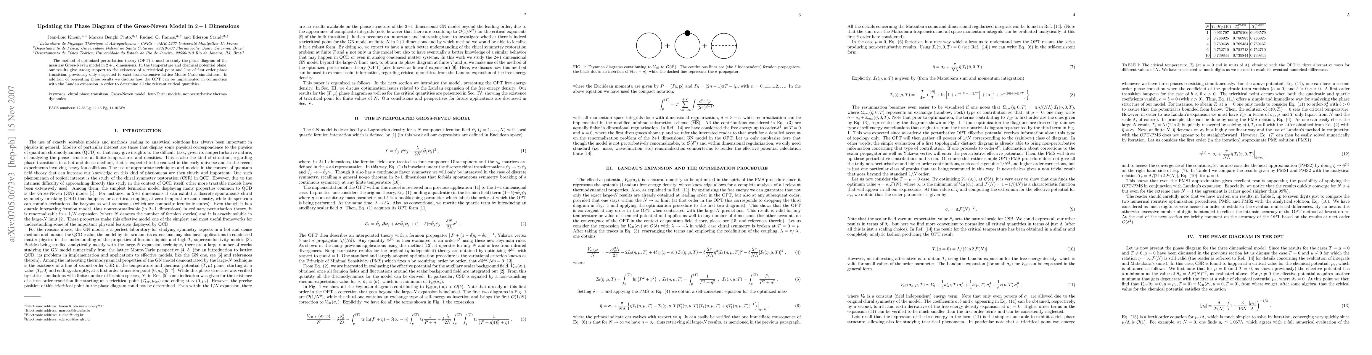 This paper uses optimized perturbation theory to investigate the phase diagram of the 2+1D Gross-Neveu model, confirming the existence of a tricritical point and a first-order phase transition line, previously inferred from lattice simulations. The study also explores combining OPT with the Landau expansion to determine critical quantities.