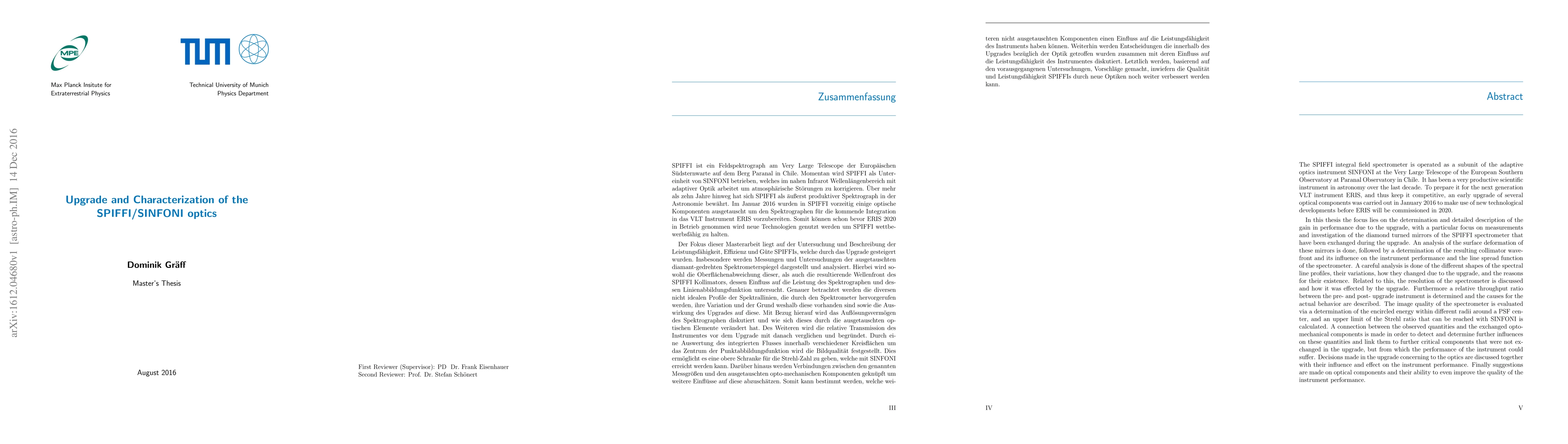 This paper details the upgrade of the SPIFFI/SINFONI optics, focusing on the performance gains from new diamond turned mirrors. It analyzes the resulting changes in collimator wavefront, spectral line profiles, and overall spectral resolution, linking these improvements to specific optical components.