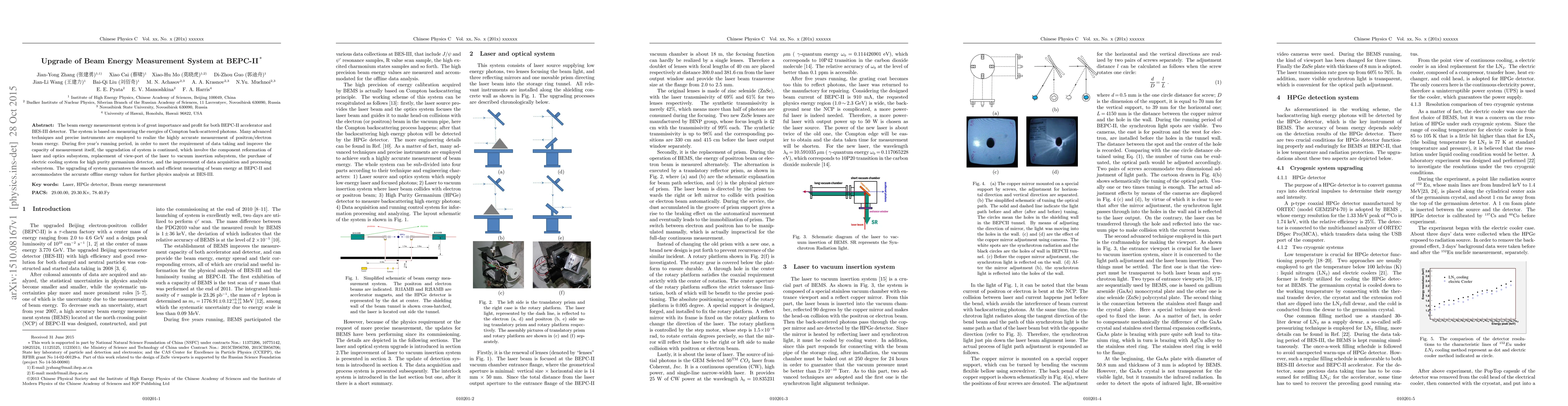 The paper details the upgrade of the BEPC-II beam energy measurement system, which uses Compton back-scattered photons for precise beam energy readings. The upgrade includes advanced laser and optical subsystem reforms, improved data acquisition and processing, and enhanced detector cooling, ensuring accurate offline energy values for BES-III physics analysis.