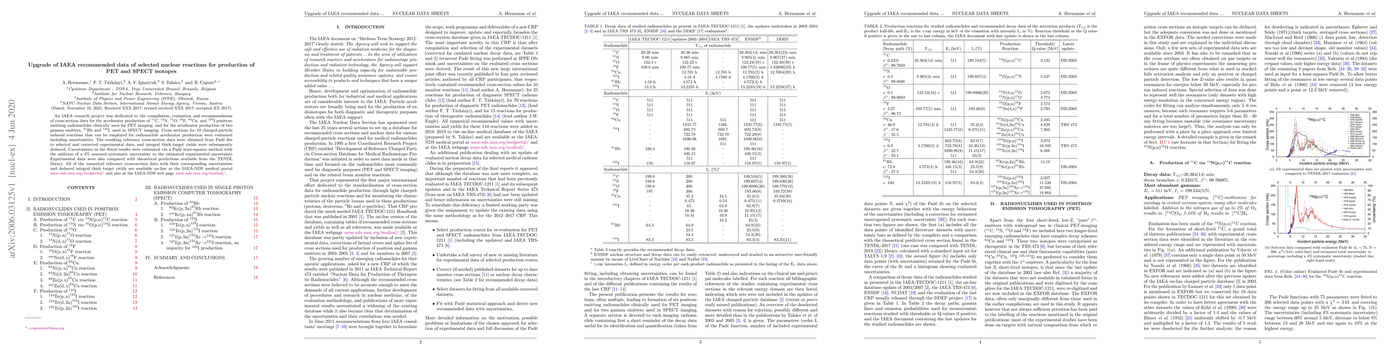The International Atomic Energy Agency (IAEA) conducted a research project to update cross-section data for producing medical isotopes used in PET and SPECT imaging. By evaluating 19 reactions with uncertainties, they generated reference data using Padé fits to corrected experimental data. These results, along with integral thick target yields and uncertainties, are now available online for medical applications.