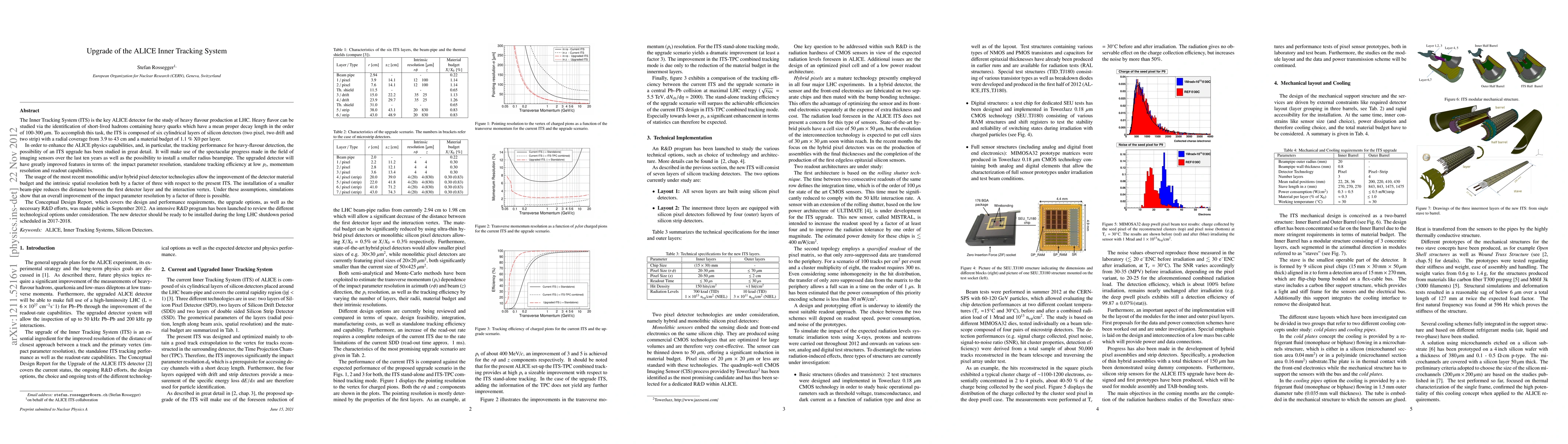 The Inner Tracking System (ITS) is the key ALICE detector for the study of heavy flavour production at LHC. Heavy flavor can be studied via the identification of short-lived hadrons containing heavy quarks which have a mean proper decay length in the order of 100-300 $\mu$m. To accomplish this task, the ITS is composed of six cylindrical layers of silicon detectors (two pixel, two drift and two strip) with a radial coverage from 3.9 to 43 cm and a material budget of 1.1% X0 per layer. %In particular, the properties of the two innermost layers define the ITS performance in measuring the displaced vertex of such short-lived particles. In order to enhance the ALICE physics capabilities, and, in particular, the tracking performance for heavy-flavour detection, the possibility of an ITS upgrade has been studied in great detail. It will make use of the spectacular progress made in the field of imaging sensors over the last ten years as well as the possibility to install a smaller radius beampipe. The upgraded detector will have greatly improved features in terms of: the impact parameter resolution, standalone tracking efficiency at low $p_{t}$, momentum resolution and readout capabilities. The Conceptual Design Report, which covers the design and performance requirements, the upgrade options, as well as the necessary R&D efforts, was made public in September 2012. An intensive R&D program has been launched to review the different technological options under consideration. The new detector should be ready to be installed during the long LHC shutdown period scheduled in 2017-2018.