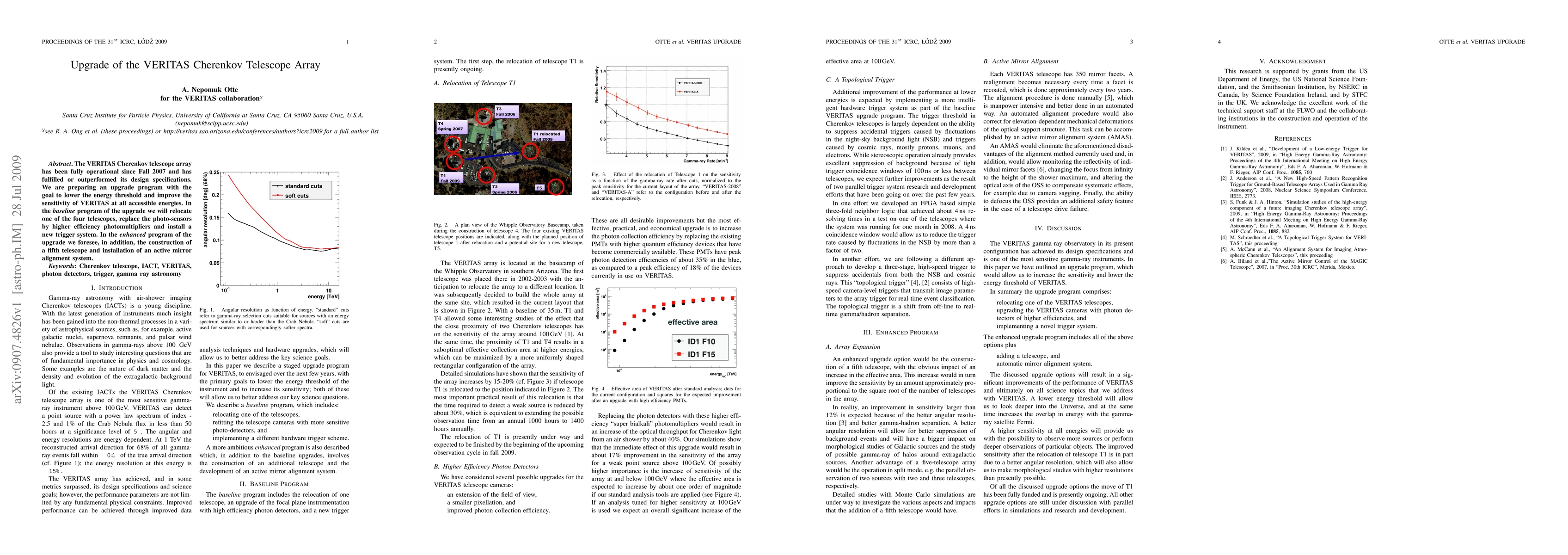The VERITAS Cherenkov telescope array, operational since 2007, is undergoing an upgrade to lower its energy threshold and enhance sensitivity. The baseline upgrade includes relocating a telescope, upgrading photo-sensors, and installing a new trigger system, while the enhanced program also plans a fifth telescope and an active mirror alignment system.