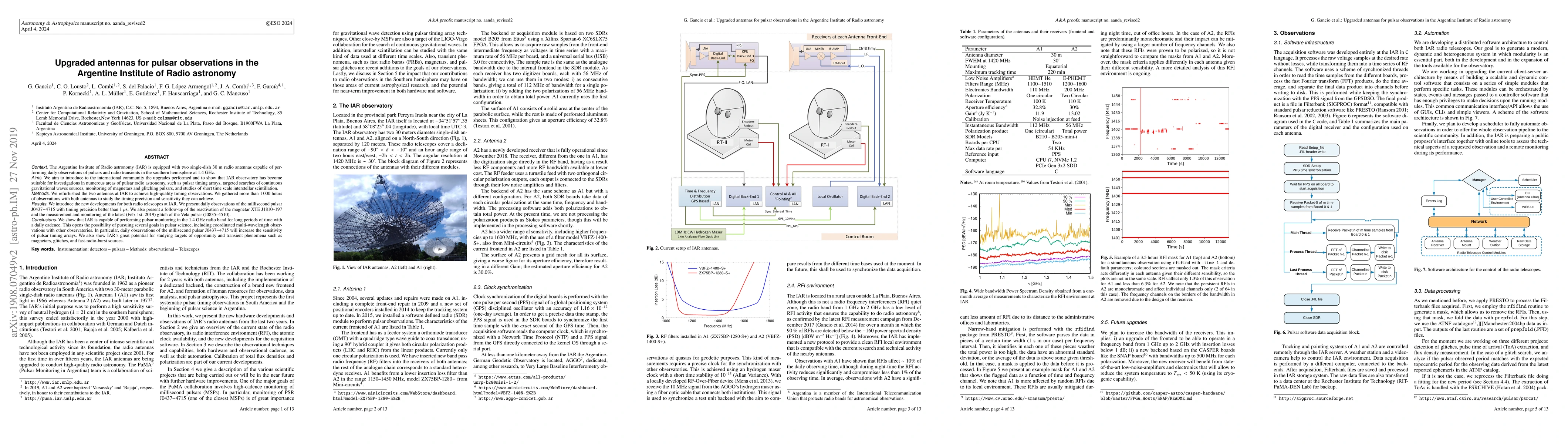 The Argentine Institute of Radio Astronomy (IAR) upgraded its two 30m radio antennas to enhance pulsar observations at 1.4 GHz, achieving high-quality timing precision. The refurbished antennas now support a range of pulsar science investigations, including millisecond pulsar monitoring and studies of magnetars and glitches.