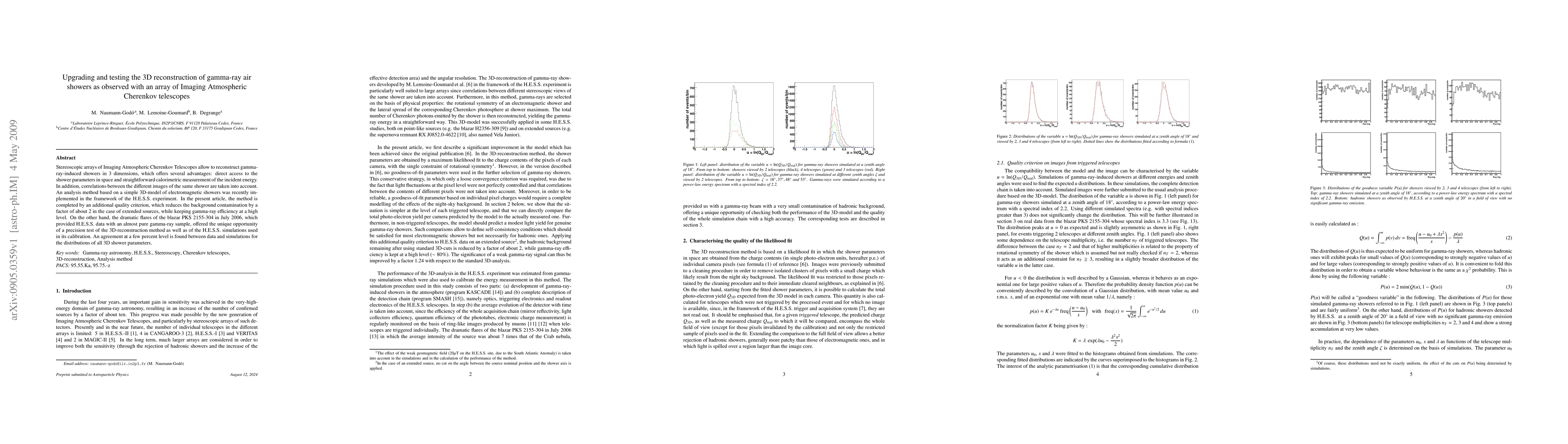 Researchers upgraded a 3D reconstruction method for gamma-ray air showers observed with Imaging Atmospheric Cherenkov telescopes, achieving agreement at a few percent level between data and simulations for shower parameters.
