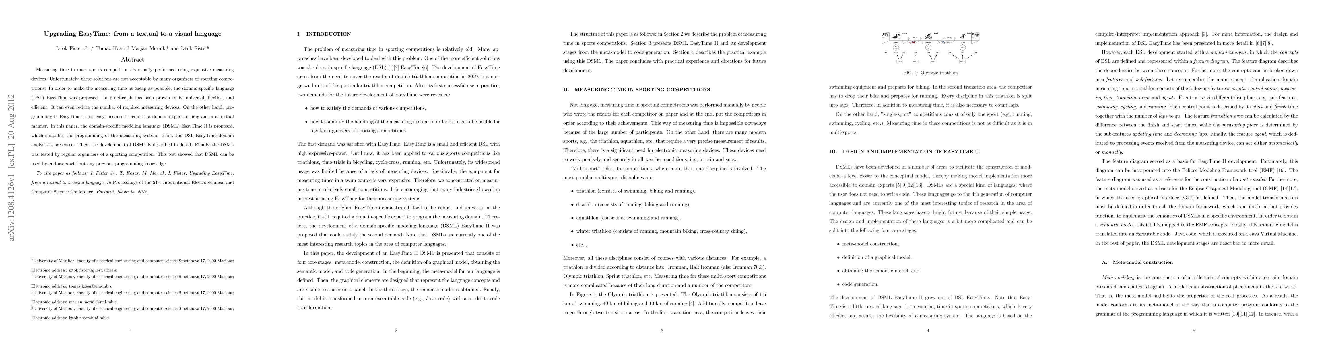 This paper proposes EasyTime II, a visual domain-specific modeling language (DSML) to simplify the programming of time measurement systems in mass sports competitions, replacing the original textual EasyTime DSL. The DSML was tested successfully by sporting event organizers, demonstrating its usability by non-programmers.