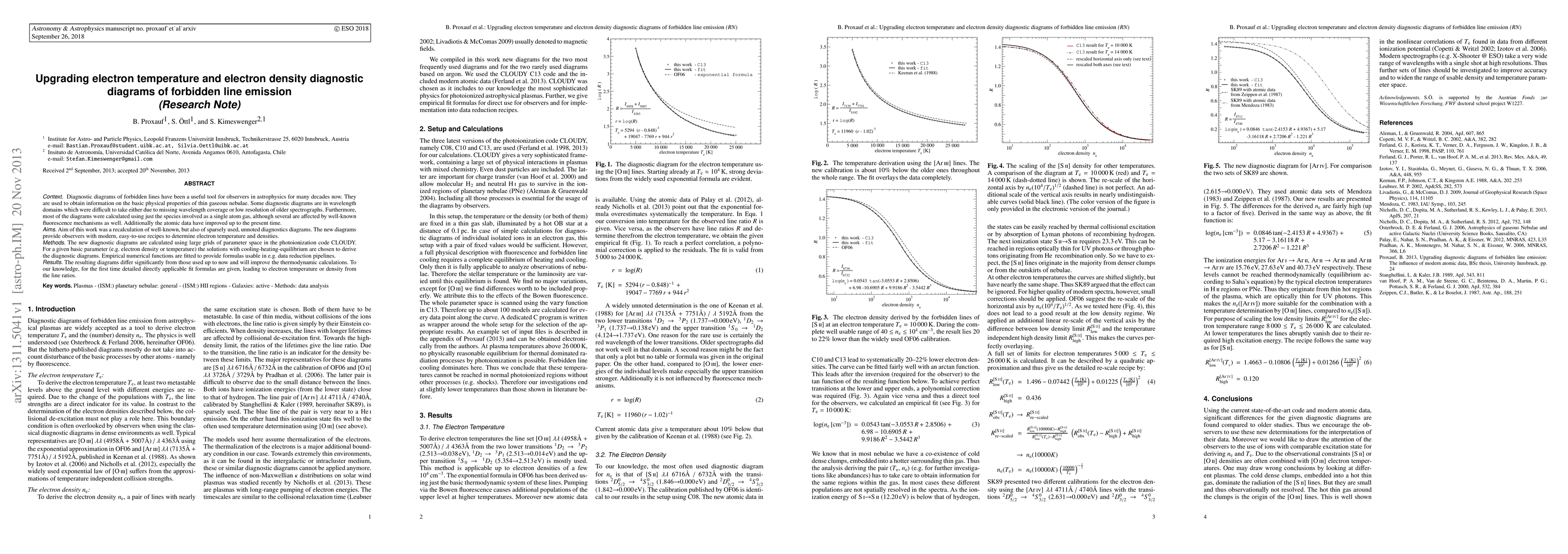 Diagnostic diagrams of forbidden lines have been a useful tool for observers in astrophysics for many decades now. They are used to obtain information on the basic physical properties of thin gaseous nebulae. Some diagnostic diagrams are in wavelength domains which were difficult to take either due to missing wavelength coverage or low resolution of older spectrographs. Furthermore, most of the diagrams were calculated using just the species involved as a single atom gas, although several are affected by well-known fluorescence mechanisms as well. Additionally the atomic data have improved up to the present time. Aim of this work was a recalculation of well-known, but also of sparsely used, unnoted diagnostics diagrams. The new diagrams provide observers with modern, easy-to-use recipes to determine electron temperature and densities. The new diagnostic diagrams are calculated using large grids of parameter space in the photoionization code CLOUDY. For a given basic parameter (e.g. electron density or temperature) the solutions with cooling-heating-equilibrium are chosen to derive the diagnostic diagrams. Empirical numerical functions are fitted to provide formulas usable in e.g. data reduction pipelines. The resulting diagrams differ significantly from those used up to now and will improve the thermodynamic calculations. To our knowledge, for the first time detailed directly applicable fit formulas are given, leading to electron temperature or density from the line ratios.