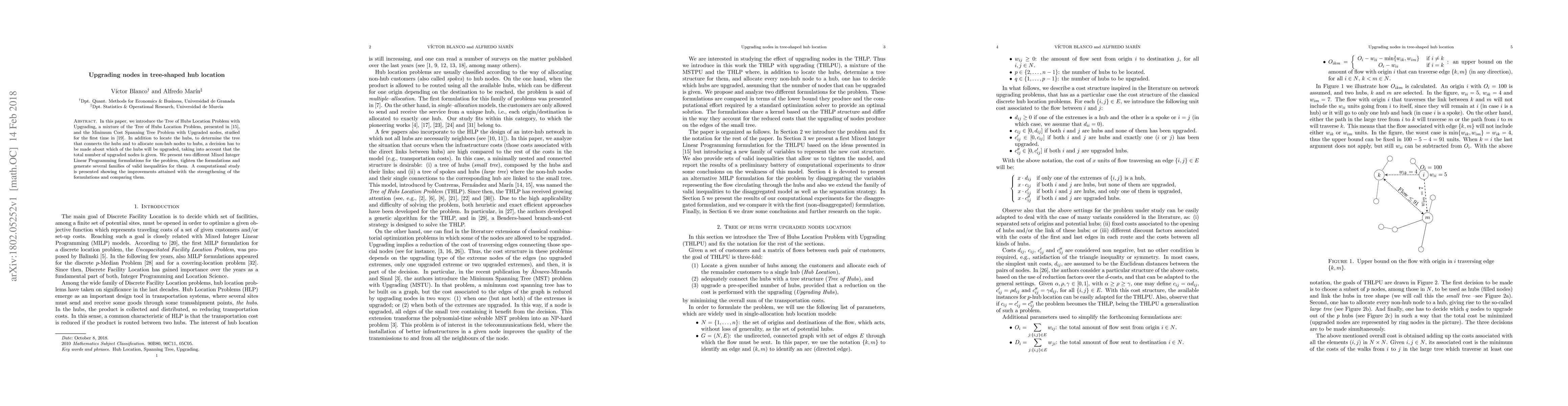 In this paper, we introduce the Tree of Hubs Location Problem with Upgrading, a mixture of the Tree of Hubs Location Problem, presented by Contreras et. al (2010), and the Minimum Cost Spanning Tree Problem with Upgraded nodes, studied for the first time by Krumke (1999). In addition to locate the hubs, to determine the tree that connects the hubs and to allocate non-hub nodes to hubs, a decision has to be made about which of the hubs will be upgraded, taking into account that the total number of upgraded nodes is given. We present two different Mixed Integer Linear Programming formulations for the problem, tighten the formulations and generate several families of valid inequalities for them. A computational study is presented showing the improvements attained with the strengthening of the formulations and comparing them.