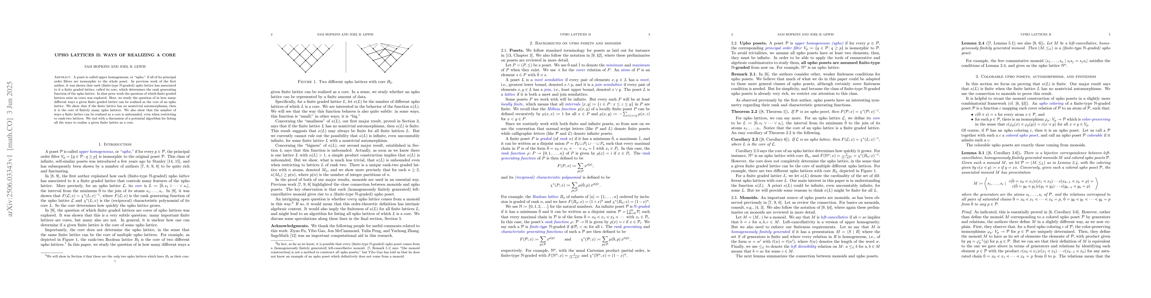 The research explores the ways in which a given finite graded lattice can be realized as the core of an upper homogeneous (upho) lattice, employing concepts from order theory and lattice theory.