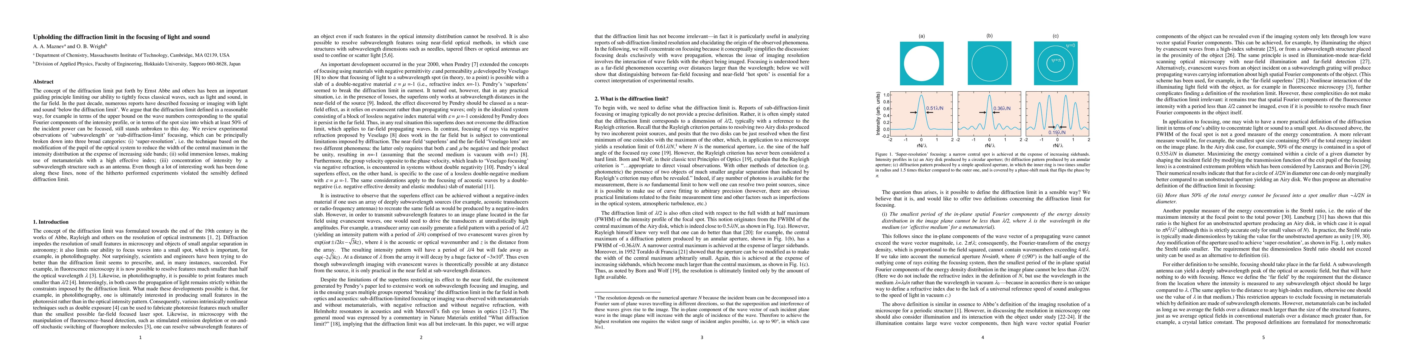 This paper argues that despite recent advances in focusing light and sound, the diffraction limit remains intact. It categorizes various techniques claiming to surpass this limit but concludes none truly violate it when the limit is sensibly defined.