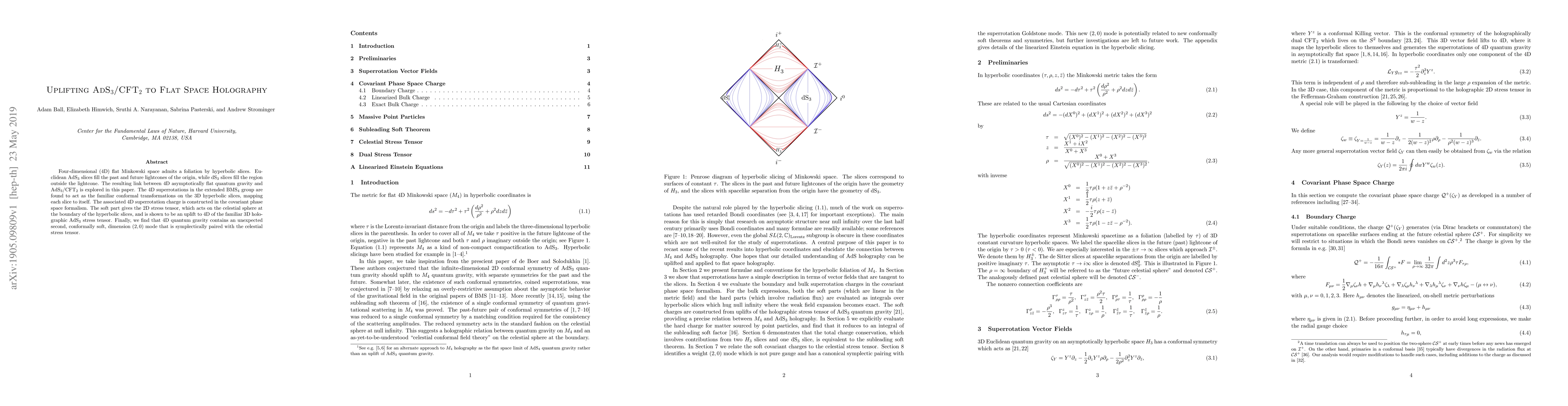 Four-dimensional (4D) flat Minkowski space admits a foliation by hyperbolic slices. Euclidean AdS3 slices fill the past and future lightcones of the origin, while dS3 slices fill the region outside the lightcone. The resulting link between 4D asymptotically flat quantum gravity and AdS3/CFT2 is explored in this paper. The 4D superrotations in the extended BMS4 group are found to act as the familiar conformal transformations on the 3D hyperbolic slices, mapping each slice to itself. The associated 4D superrotation charge is constructed in the covariant phase space formalism. The soft part gives the 2D stress tensor, which acts on the celestial sphere at the boundary of the hyperbolic slices, and is shown to be an uplift to 4D of the familiar 3D holographic AdS3 stress tensor. Finally, we find that 4D quantum gravity contains an unexpected second, conformally soft, dimension (2, 0) mode that is symplectically paired with the celestial stress tensor.