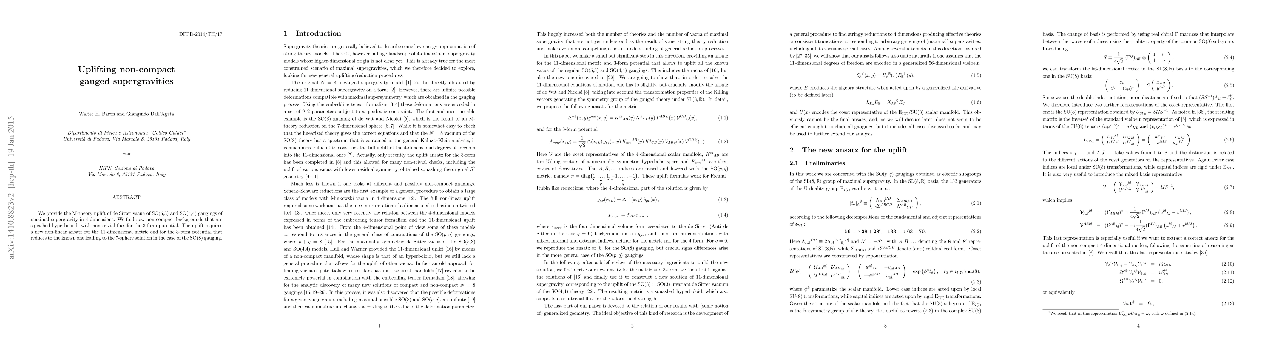 Researchers found new non-compact backgrounds for de Sitter vacua in supergravities, involving squashed hyperboloids with non-trivial flux, and developed a new ansatz for the 11-dimensional metric and 3-form potential.