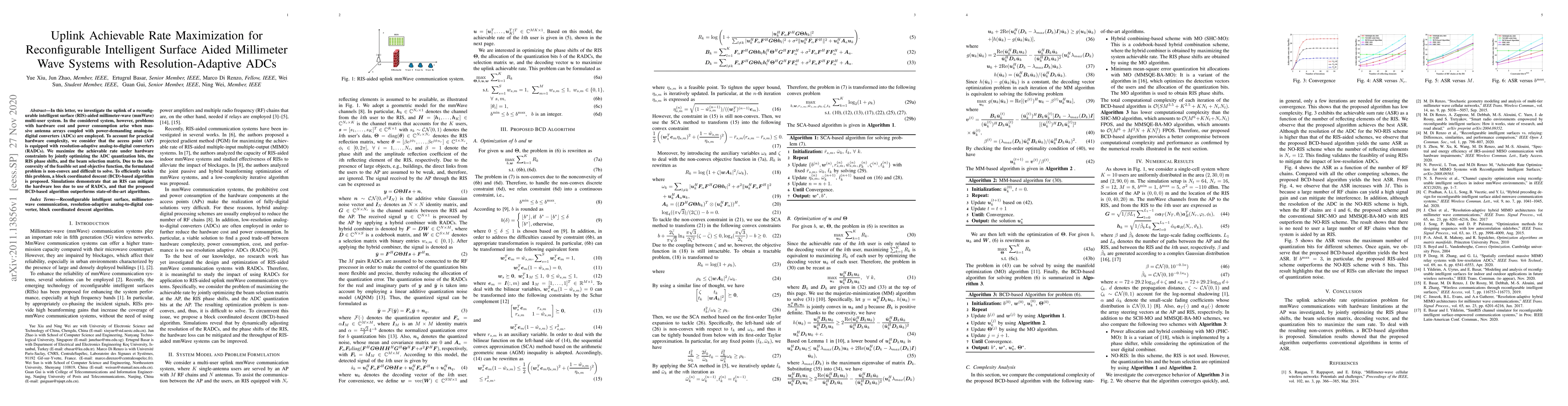 This paper explores optimizing the uplink achievable rate in a RIS-aided mmWave multi-user system using resolution-adaptive ADCs to address hardware cost and power consumption issues. A block coordinated descent algorithm is proposed to solve the non-convex optimization problem efficiently, demonstrating improved performance compared to existing methods.