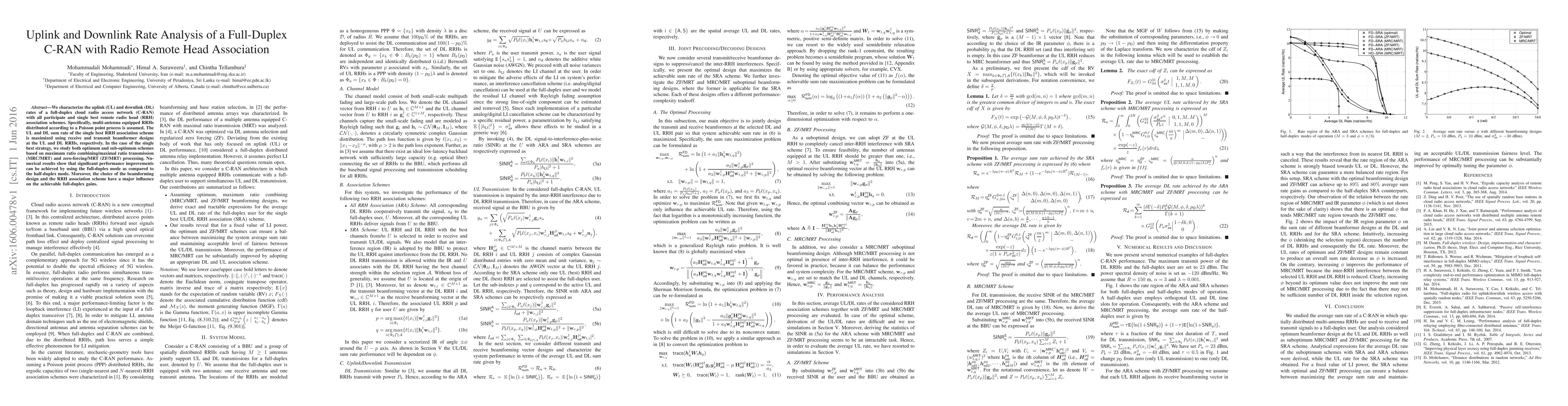 This paper analyzes the uplink and downlink rates of a full-duplex cloud radio access network (C-RAN) with single best remote radio head association, employing beamforming designs. It finds that full-duplex mode significantly outperforms half-duplex mode, with the choice of beamforming and association schemes greatly influencing the gains.