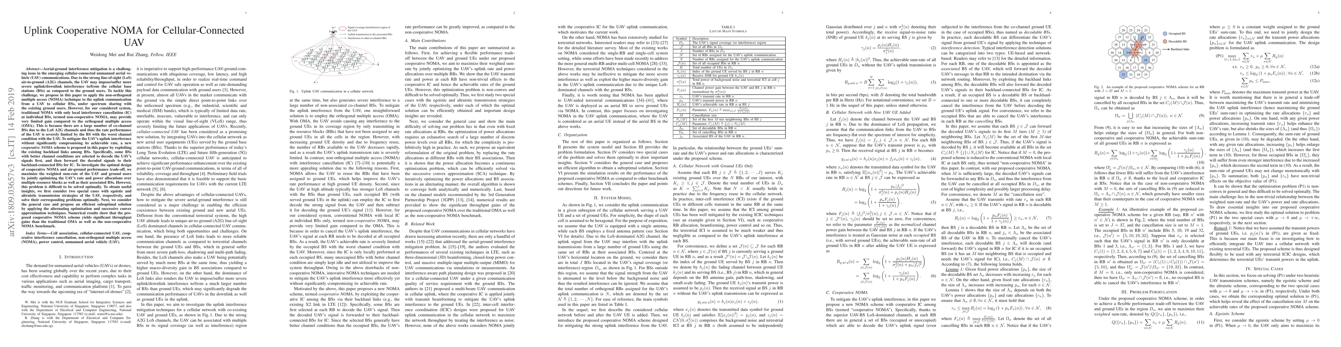 This paper proposes a cooperative NOMA scheme for uplink communication in cellular-connected UAVs to mitigate aerial-ground interference. It introduces a method to exploit backhaul links among base stations for better interference cancellation, achieving significant throughput gains compared to traditional NOMA and OMA.