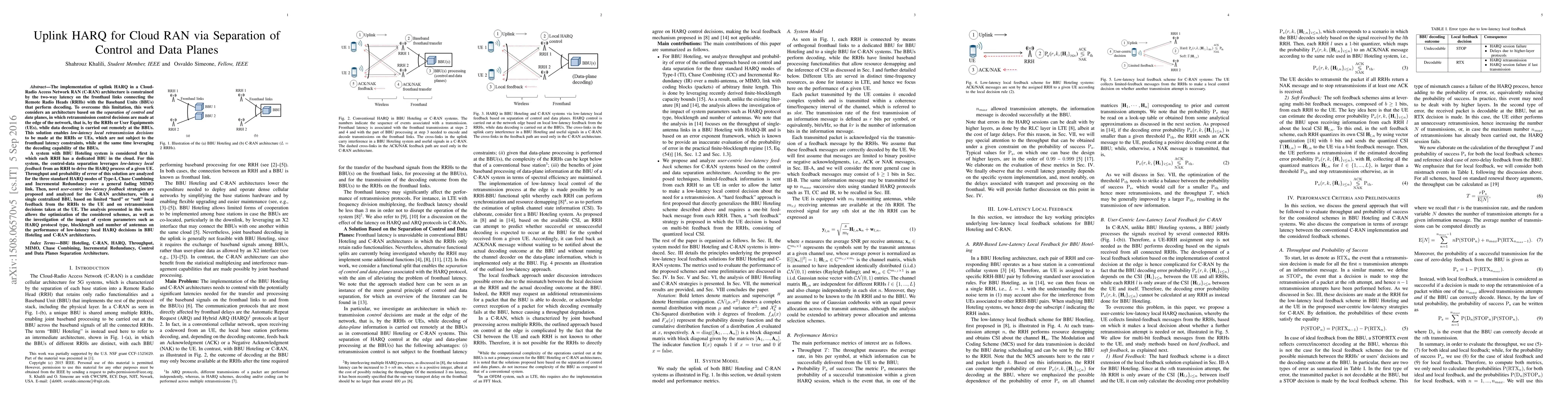 This paper proposes a new approach to uplink HARQ in Cloud-RAN architectures by separating control and data planes, enabling low-latency local retransmission decisions while leveraging remote decoding capabilities.