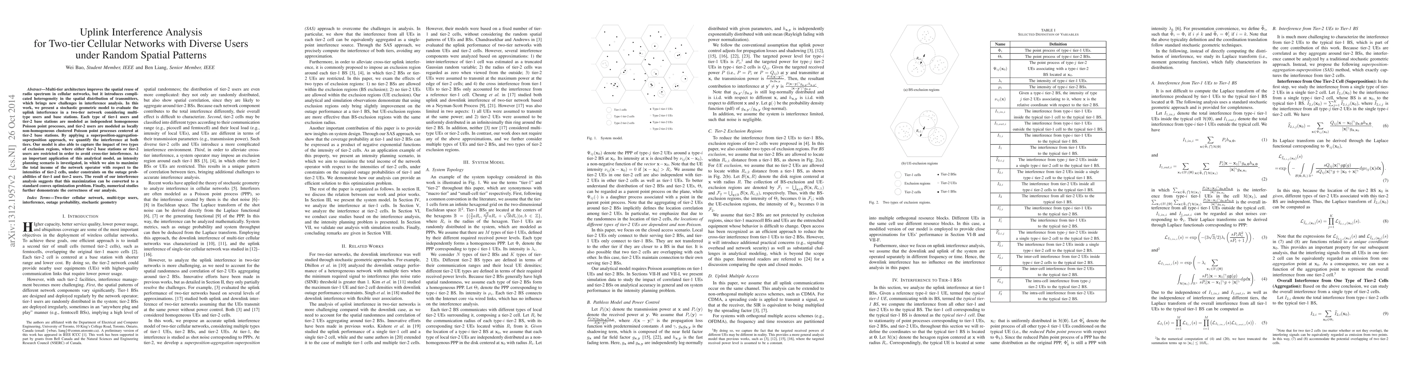 This paper presents a stochastic geometric model to analyze uplink interference in two-tier cellular networks, considering diverse user types and spatial distributions. The study formulates a convex optimization problem to maximize network operator income by planning the intensity of tier-2 cells, while ensuring acceptable outage probabilities for users.