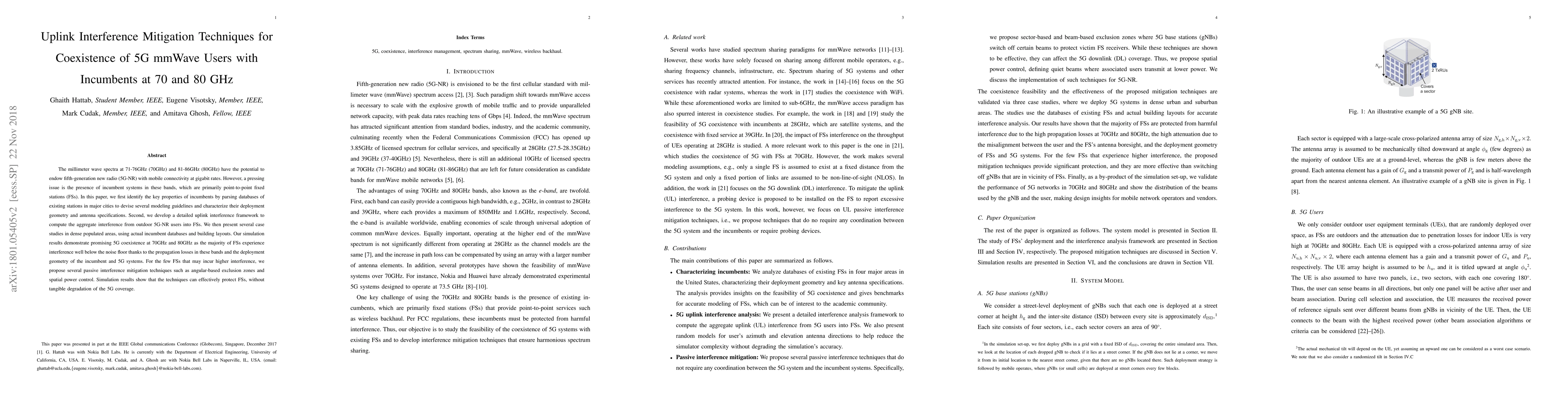 This paper investigates uplink interference mitigation techniques for 5G mmWave users coexisting with incumbent point-to-point fixed stations at 70GHz and 80GHz. It develops a framework to compute interference and proposes passive mitigation methods, demonstrating effective coexistence with minimal impact on 5G coverage.