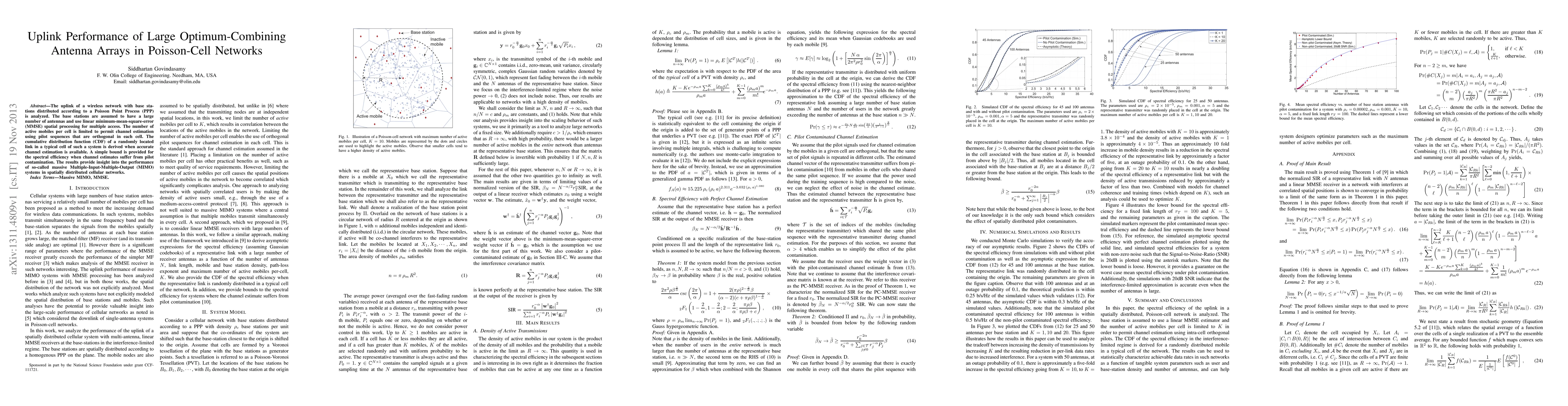 This paper analyzes the uplink performance of large antenna arrays in Poisson-cell networks using linear MMSE spatial processing. It derives the CDF of link performance with accurate channel estimation and provides a spectral efficiency bound under pilot contamination, offering insights into massive MIMO systems in distributed cellular networks.