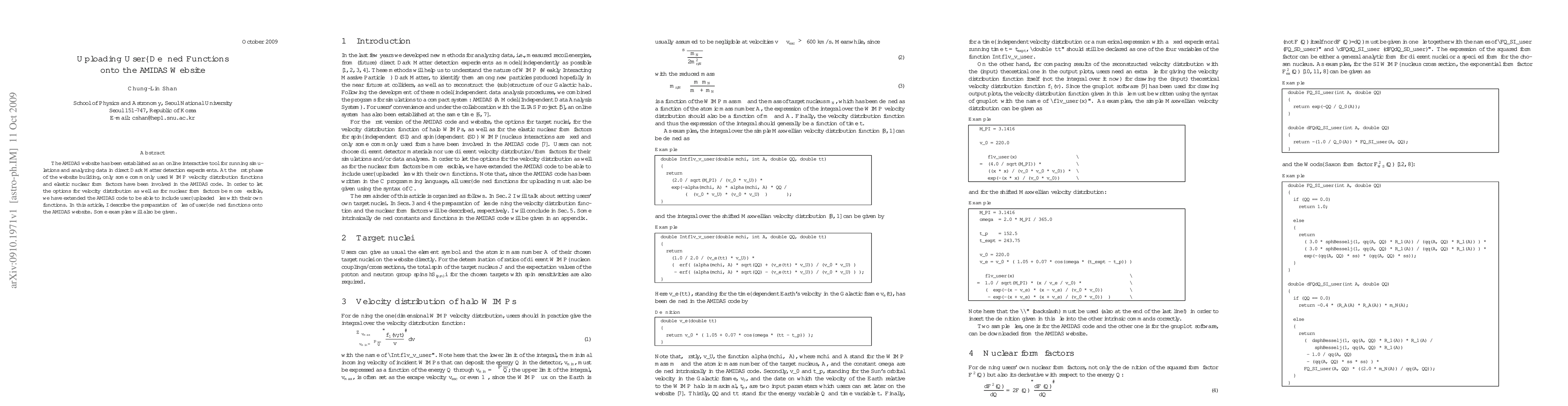 This paper details the extension of the AMIDAS website to allow users to upload their own velocity distribution functions and nuclear form factors, enhancing the flexibility of simulations for direct Dark Matter detection experiments. Examples of user-defined function uploads are provided to illustrate the process.