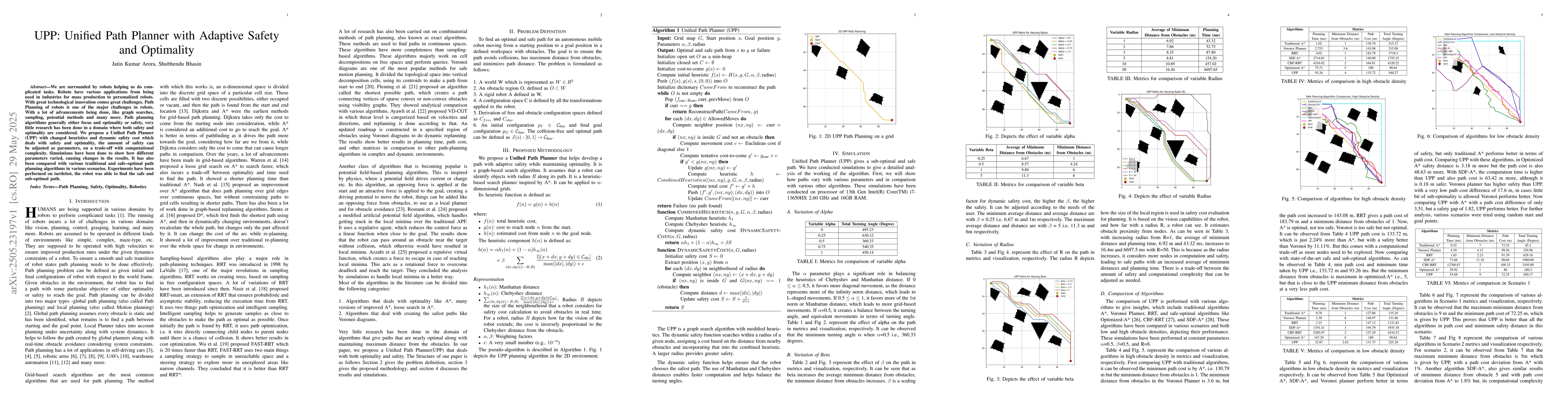 The research proposes a Unified Path Planner (UPP) that uses modified heuristics and a dynamic safety cost function to balance safety and optimality in path planning for robots. UPP is a graph search algorithm that incorporates Manhattan and Chebyshev distances for faster computation and balanced turning angles.