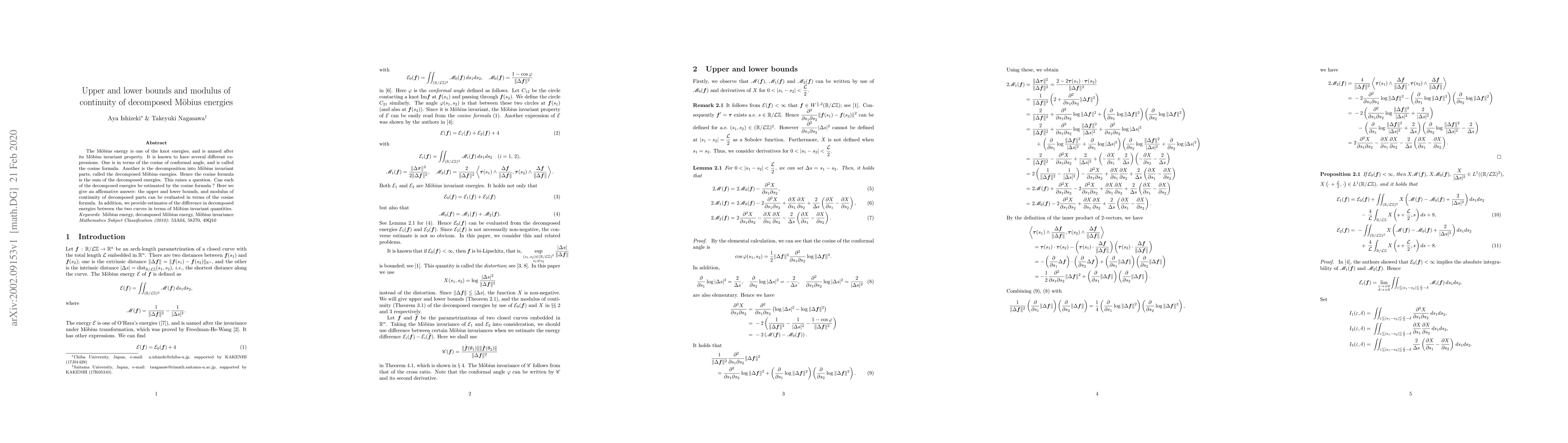 The M\"{o}bius energy is one of the knot energies, and is named after its M\"{o}bius invariant property. It is known to have several different expressions. One is in terms of the cosine of conformal angle, and is called the cosine formula. Another is the decomposition into M\"{o}bius invariant parts, called the decomposed M\"{o}bius energies. Hence the cosine formula is the sum of the decomposed energies. This raises a question. Can each of the decomposed energies be estimated by the cosine formula~? Here we give an affirmative answer: the upper and lower bounds, and modulus of continuity of decomposed parts can be evaluated in terms of the cosine formula. In addition, we provide estimates of the difference in decomposed energies between the two curves in terms of M\"{o}bius invariant quantities.