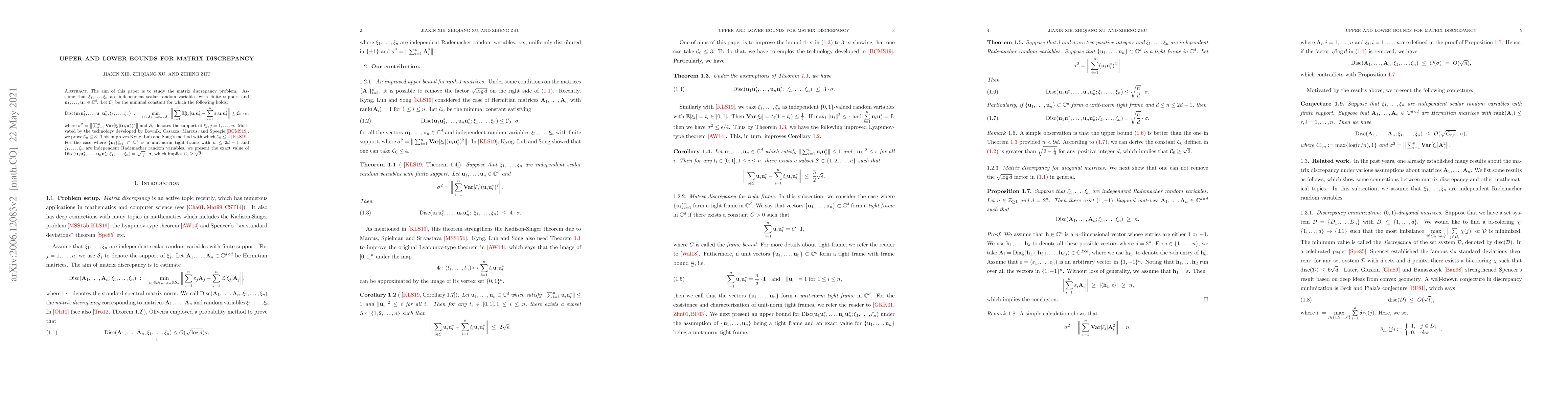 The aim of this paper is to study the matrix discrepancy problem. Assume that $\xi_1,\ldots,\xi_n$ are independent scalar random variables with finite support and $\mathbf{u}_1,\ldots,\mathbf{u}_n\in \mathbb{C}^d$. Let $\mathcal{C}_0$ be the minimal constant for which the following holds: \[ {\rm Disc}(\mathbf{u}_1\mathbf{u}_1^*,\ldots,\mathbf{u}_n\mathbf{u}_n^*; \xi_1,\ldots,\xi_n)\,\,:=\,\,\min_{\varepsilon_1\in \mathcal{S}_1,\ldots,\varepsilon_n\in \mathcal{S}_n}\bigg\|\sum_{i=1}^n\mathbb{E}[\xi_i]\mathbf{u}_i\mathbf{u}_i^*-\sum_{i=1}^n\varepsilon_i\mathbf{u}_i\mathbf{u}_i^*\bigg\|\leq \mathcal{C}_0\cdot\sigma, \] where $\sigma^2 = \big\|\sum_{i=1}^n \mathbf{Var}[\xi_i](\mathbf{u}_i\mathbf{u}_i^*)^2\big\|$ and $\mathcal{S}_j$ denotes the support of $\xi_j, j=1,\ldots,n$. Motivated by the technology developed by Bownik, Casazza, Marcus, and Speegle, we prove $\mathcal{C}_0\leq 3$. This improves Kyng, Luh and Song's method with which $\mathcal{C}_0\leq 4$. For the case where $\{\mathbf{u}_i\}_{i=1}^n\subset \mathbb{C}^d$ is a unit-norm tight frame with $ n\leq 2d-1$ and $\xi_1,\ldots,\xi_n$ are independent Rademacher random variables, we present the exact value of ${\rm Disc}(\mathbf{u}_1\mathbf{u}_1^*,\ldots,\mathbf{u}_n\mathbf{u}_n^*; \xi_1,\ldots,\xi_n)=\sqrt{\frac{n}{d}}\cdot\sigma$, which implies $\mathcal{C}_0\geq \sqrt{2}$.