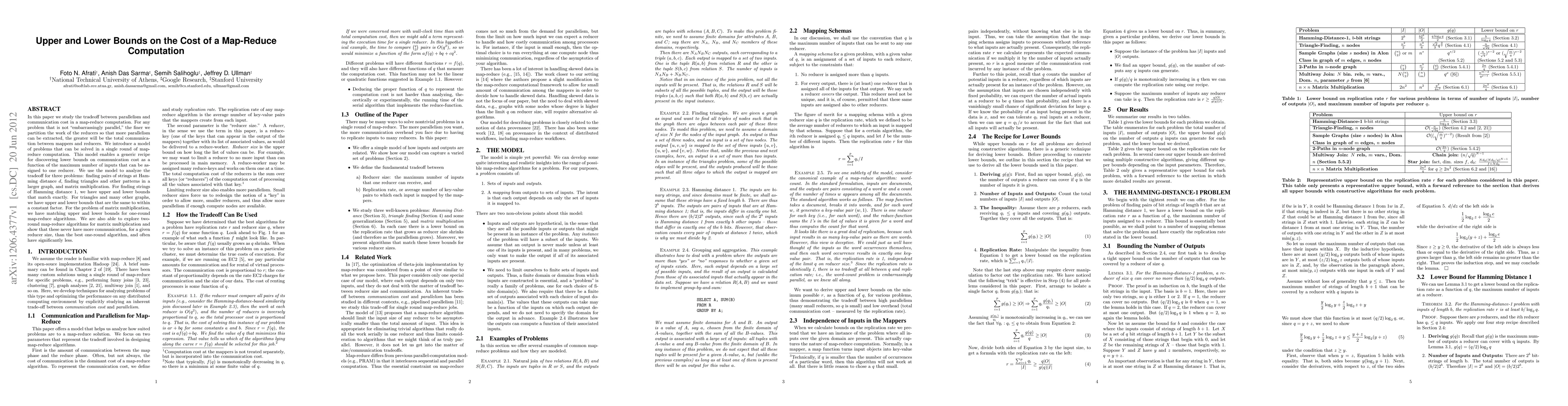 This paper studies the tradeoff between parallelism and communication cost in map-reduce computations, finding bounds for three problems: string matching, graph patterns, and matrix multiplication.