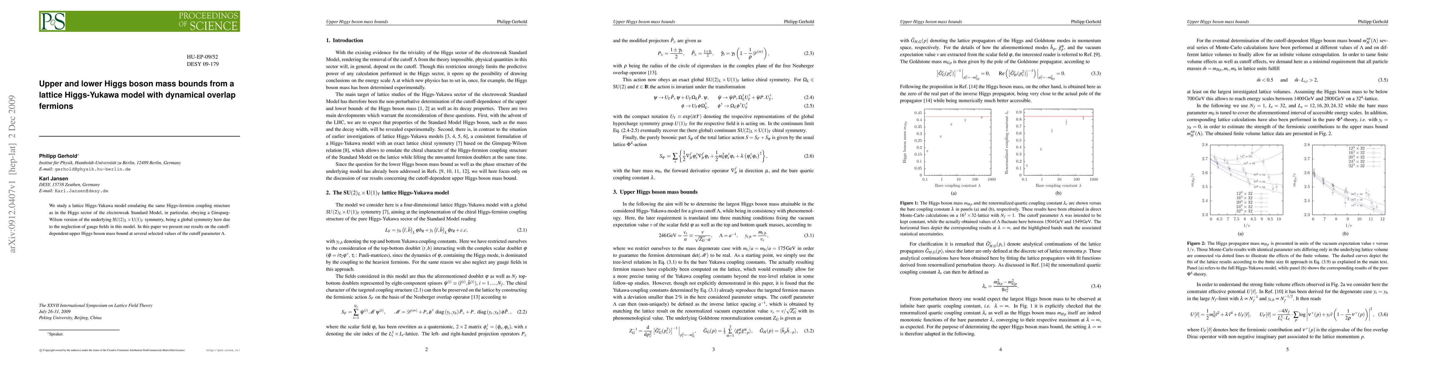 This paper investigates a lattice Higgs-Yukawa model using dynamical overlap fermions to emulate the Higgs-fermion coupling in the Standard Model, focusing on the upper bound of the Higgs boson mass at various cutoff values. The study respects the Ginsparg-Wilson version of the SU(2) x U(1) symmetry.
