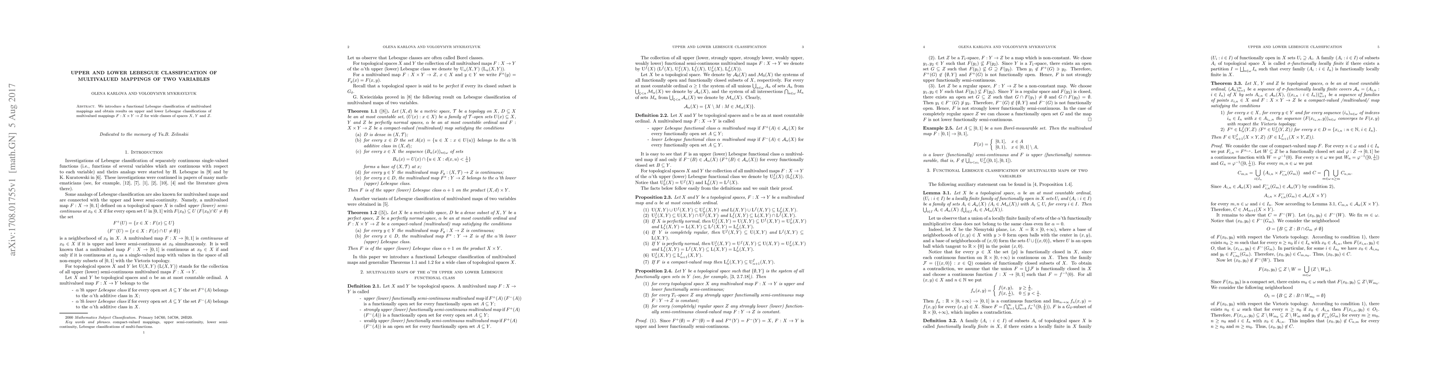 This paper introduces a functional Lebesgue classification of multivalued mappings for two variables, providing results on upper and lower classifications for various spaces.